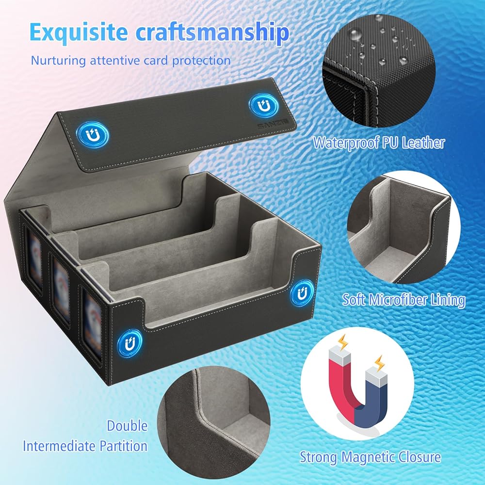 【CARD DECK BOX】The SANZIE triple-commander deck box is made of premium PU leather material on the outside and soft microfiber on the inside. The flawless surface and soft lining protect your cards and keep your precious cards in mint condition.