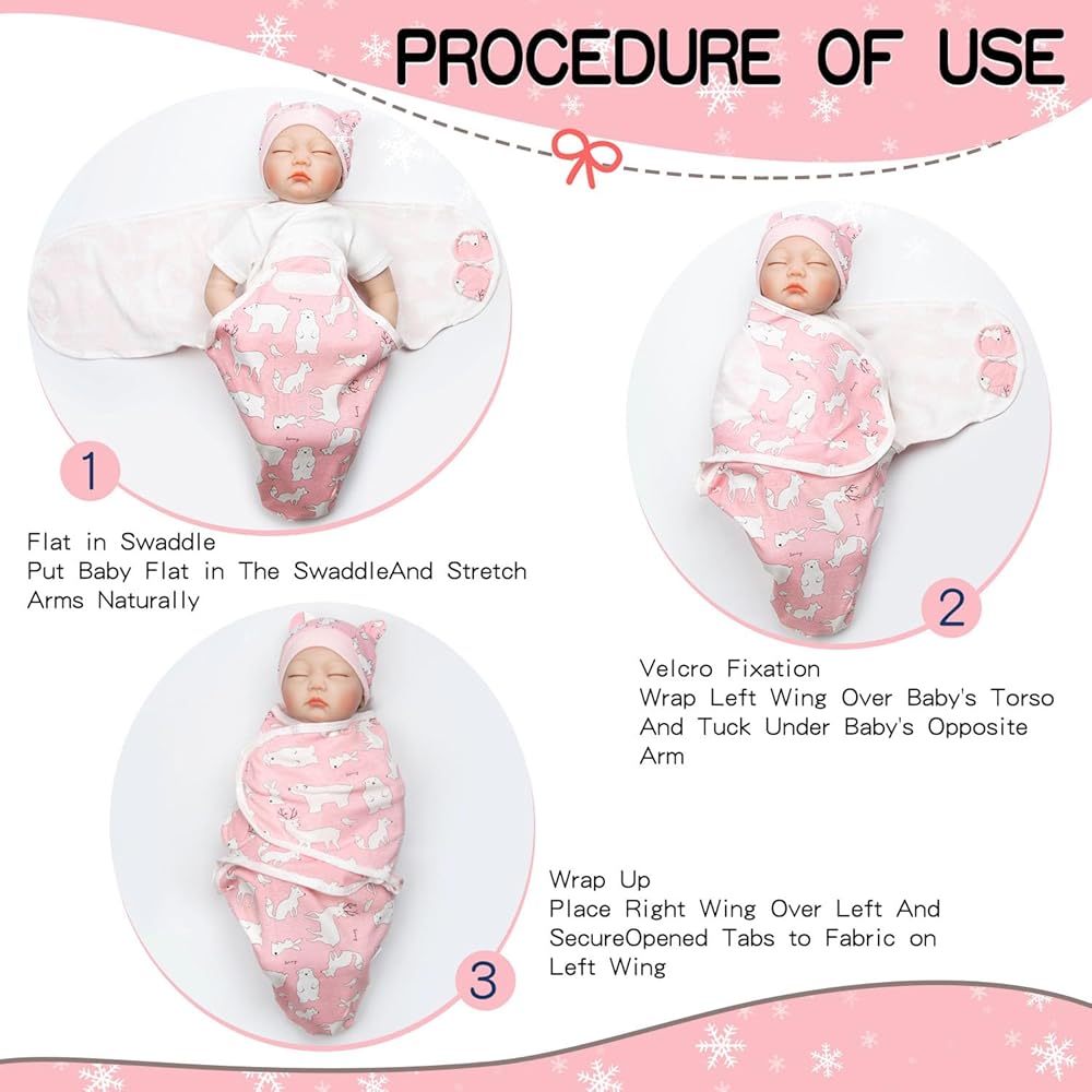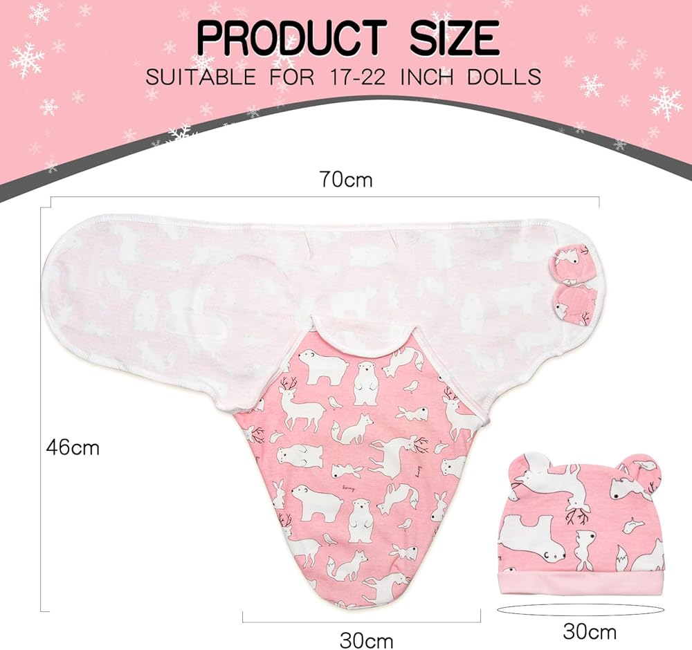 - Reborn baby doll swaddle blanket set, consisting of 2 pieces. Hat x1,Swaddle blanket x1.