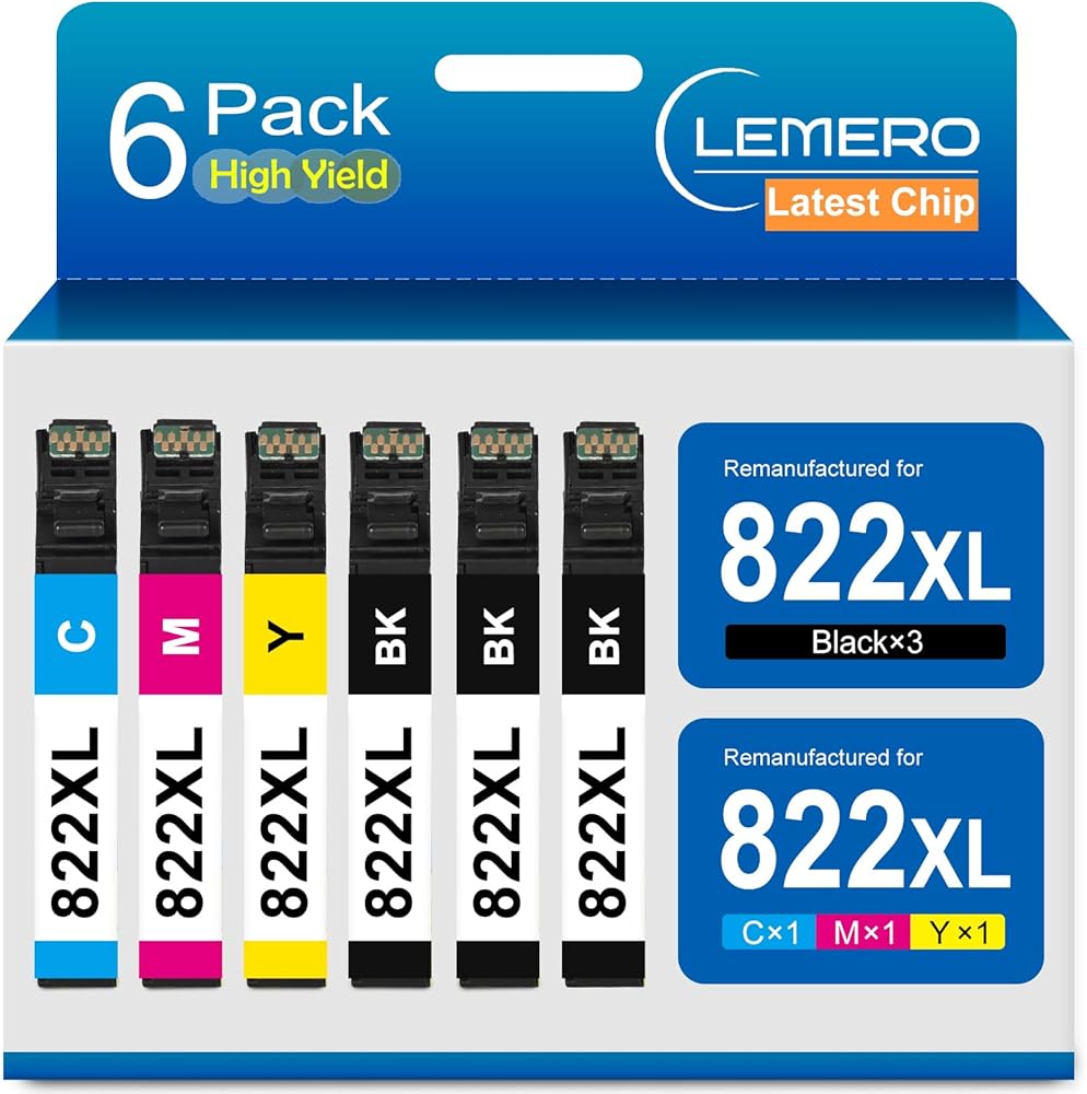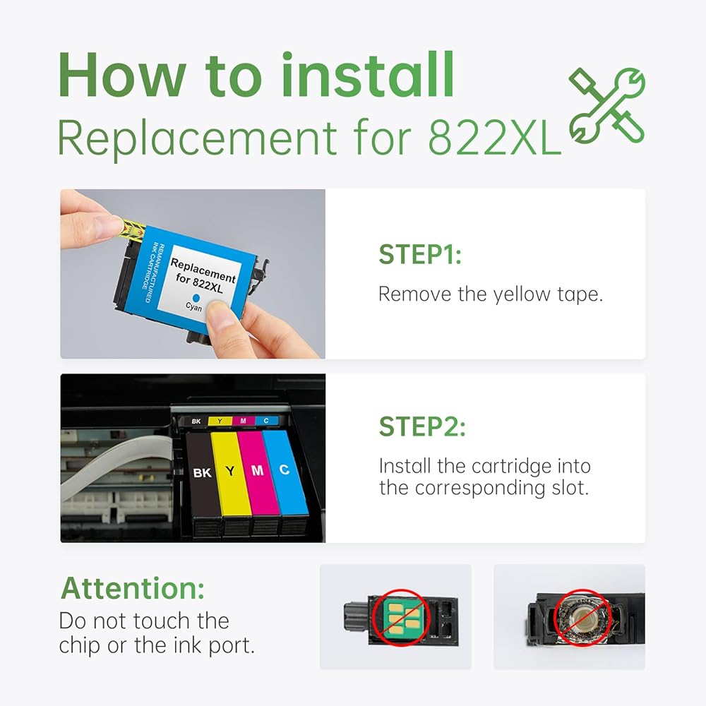 With latest upgraded chips, this replacement for 822xl ink cartridges combo pack ensures easy installation and instant recognization, delivers smooth and efficient printings