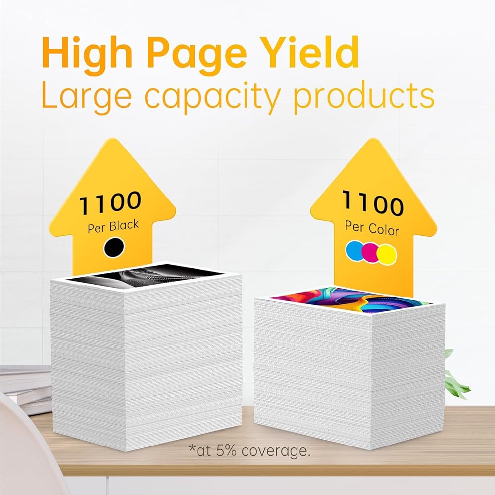 822XL ink cartridges combo pack have high page yield: up to 1100 pages per 822xl black ink cartridge, 1100 pages per 822xl color ink cartridge, 5% coverage at A4 paper
