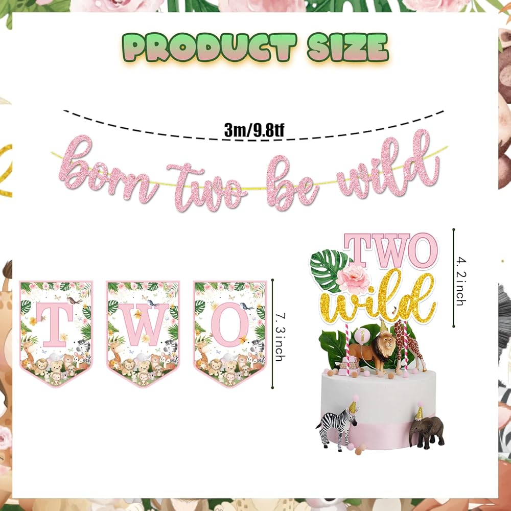 Two Wild Birthday Decorations, Two Wild Birthday Decorations Girl Two Wild, Born Two Be Wild Birthday Decorations Girl Born Two Be Wild Birthday Decorations Girl for Jungle Theme Birthday Girl