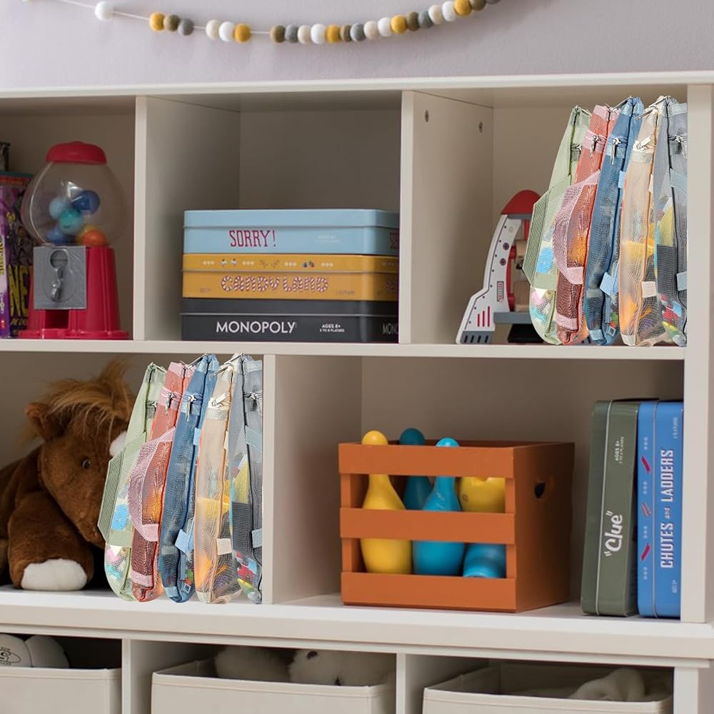 Neat and Organized: The Breathable Mesh zipper pouch bags with double-layer transparent mesh pockets, one layer can hold toy manuals, and the other can store toy pieces. Each set of toys has its own dedicated bag. Toy storage bags help maintain a clean and organized home, reducing the feeling of chaos. This is particularly important for households with children, as it allows for quick and orderly storage of toys, avoiding clutter in hallways and rooms.