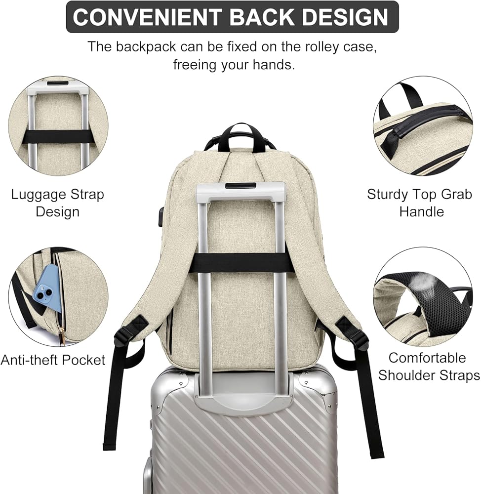 USB Interface & Luggage Strap: With an external built-in USB charger and an internal charging cable, this USB backpack provides a more convenient way for you to charge your phone while walking. (Note: Mobile power is not included) There is a built-in luggage strap on the back of the backpack, which can easily slide over your luggage/suitcase handle to reduce pressure on your back and shoulders during use.
