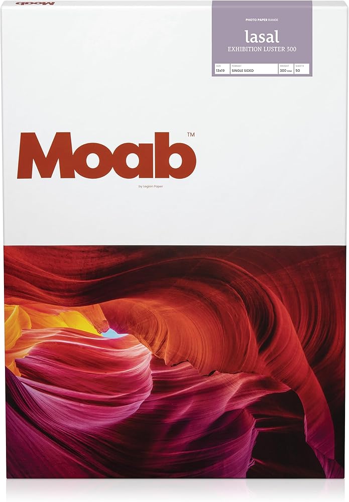The Moab Lasal Exhibition Luster 300 Paper is a true heavyweight, archival exhibition-quality luster paper, designed for use with all inkjet printers. The paper is coated with the latest fourth-generation technology to produce an extra-wide color gamut never before seen in a luster paper. Named after the LaSal mountains, whose snowy peaks tower above Moab keeping watch on the canyon lands below, Lasal Exhibition Luster remains true to its namesake, incorporating many of the elements found in the surrounding Moab environment: pure crispy whites and deep, luscious colors. Lasal Exhibition Luster weighs in at a healthy 300gsm. Ideal for gallery and exhibition prints. Available in sheet formats from 4"x6" up to 17"x22" and rolls from 17" up to 60" wide.