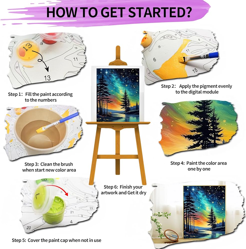NO PAINT MIXING OR BLEDNING: The pigments are individual package and provide good paint coverage to cover the lines and numbers. Besides, there are enough pigments to cover the numbers with one coat of paint. You can create an eye-catching painting with our DIY paint by numbers for adults.