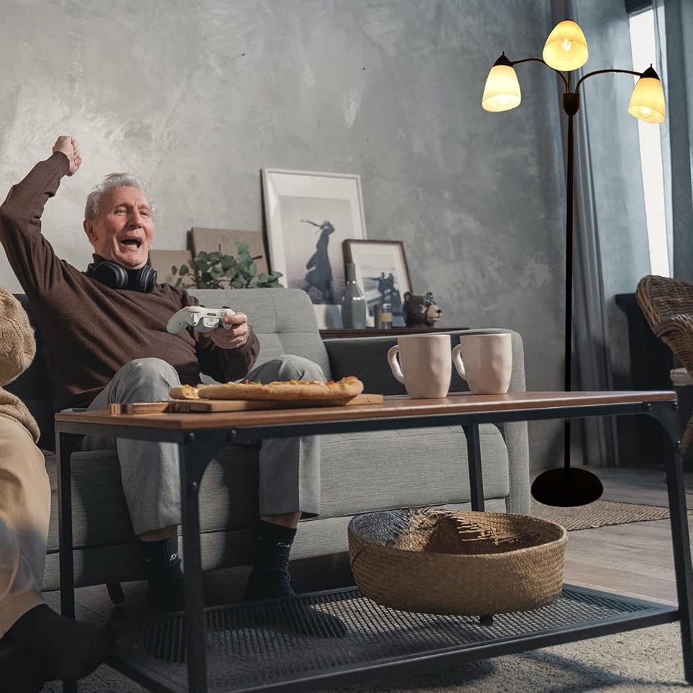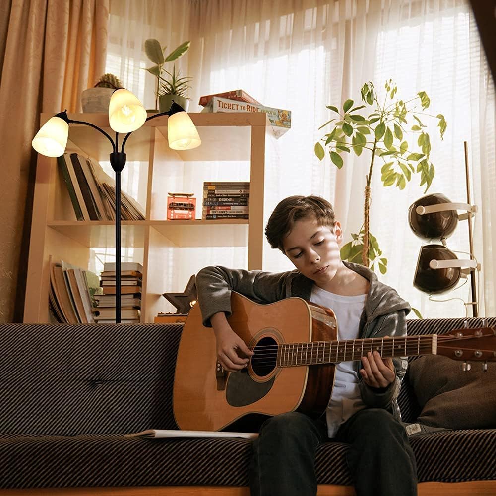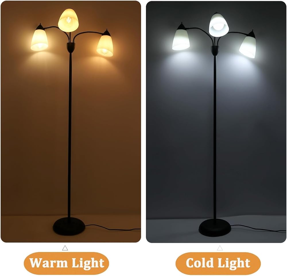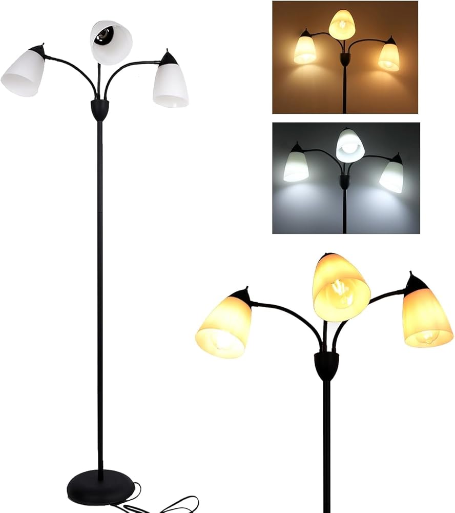 【Adjustable Gooseneck Design】 : This tall floor lamp comes with flexible gooseneck arms that allow for great flexibility in lighting area. The 3 arms are 360° bendable and you can freely adjust the lamp heads up and down or point it in different directions to add tons of light. The 3-light tree floor lamp is perfect for any task, work or sewing when you need night light or reading light.
