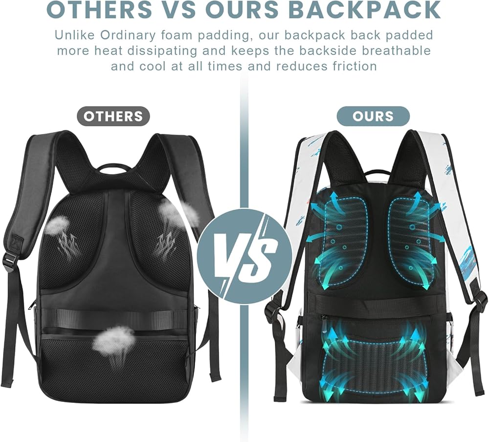 الوظيفة: يحتوي الجزء الخلفي من حقيبة الظهر على جيب مخفي لحماية أغراضك الثمينة. تصميم خلفي مريح لتدفق الهواء، الجزء الخلفي من حقيبة الكتب مبطن بمادة EVA، مما يحافظ على الجانب الخلفي مساميًا وباردًا. أحزمة كتف قابلة للتنفس وقابلة للتعديل تخفف الضغط على الكتف