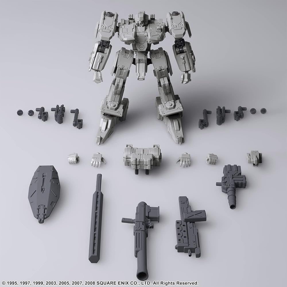 From Square Enix. Introducing Front Mission Structure Arts Vol. 3 in a fresh light gray model color. These 1/72 scale models are compatible with military miniature figures and diorama displays of the same scale. With meticulously recreated body parts and interchangeable components, including four hardpoints for attaching weapons and shields, you have the freedom to customize your own unique creations. The Vyzov model, developed by Demitri Corp. of the Republic of Zaftra, is an assault Wanzer with a powerful engine and exceptional durability. It comes with a range of accessories for added versatility. Let your imagination run wild as you assemble, paint, and enjoy these kits in countless ways.