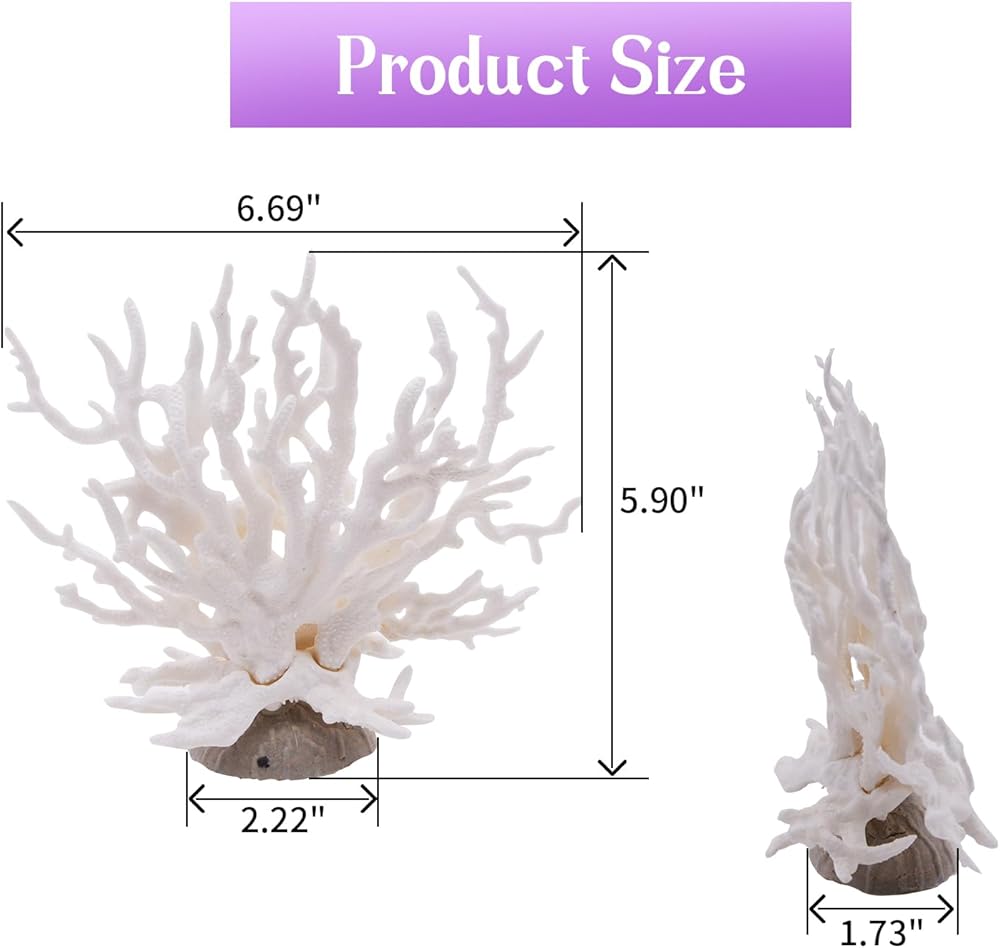 Our white coral reef decor size (approx): 6.69 x 5.9inch( LxWxH). Great for small or medium betta fish tank.