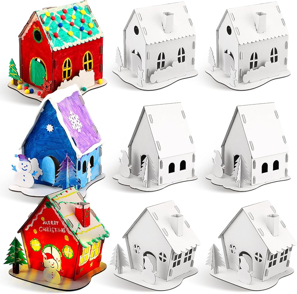 • Easy Assembly: the well designed gingerbread house kit cardboard comes in a variety of shapes, allowing for easy assembly; You can fold and assemble along the folds of the paper without glue and screws, and then paint your favorite patterns and colors to build your own house