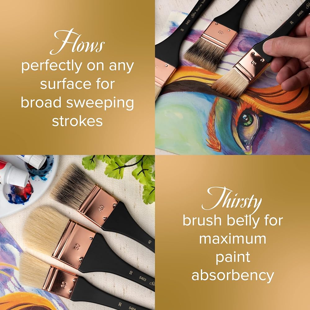 ATELIER: Our Atelier art brushes were designed for acrylic and watercolor media artists. These brushes are very thirsty and have a full belly for absorbing a maximum amount of liquid, limiting reload time. The fibers are also quite flexible.