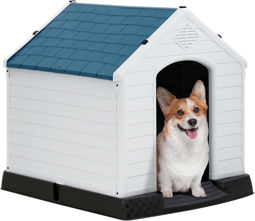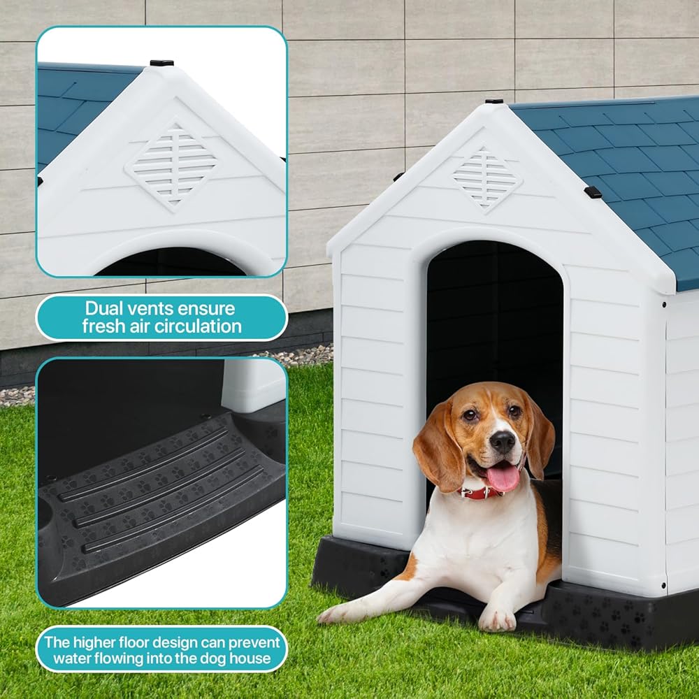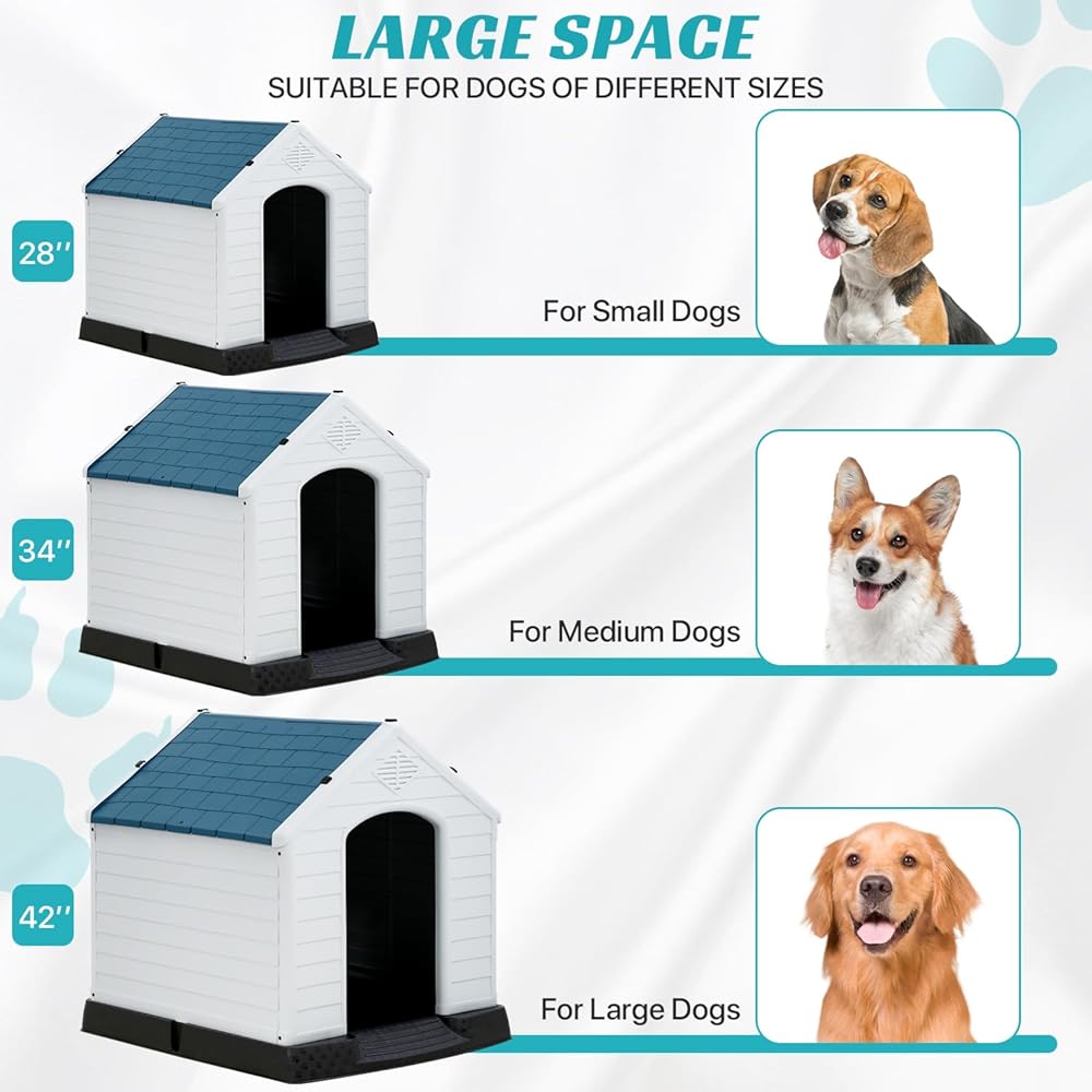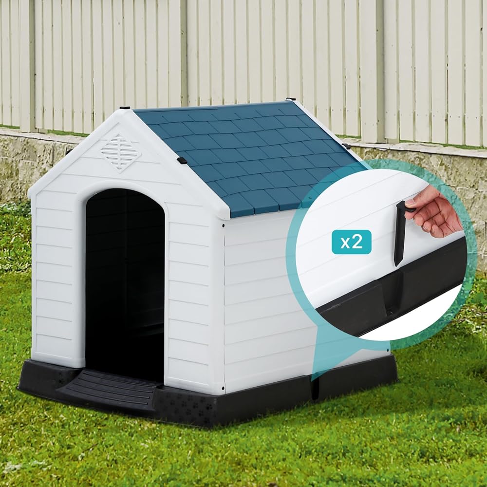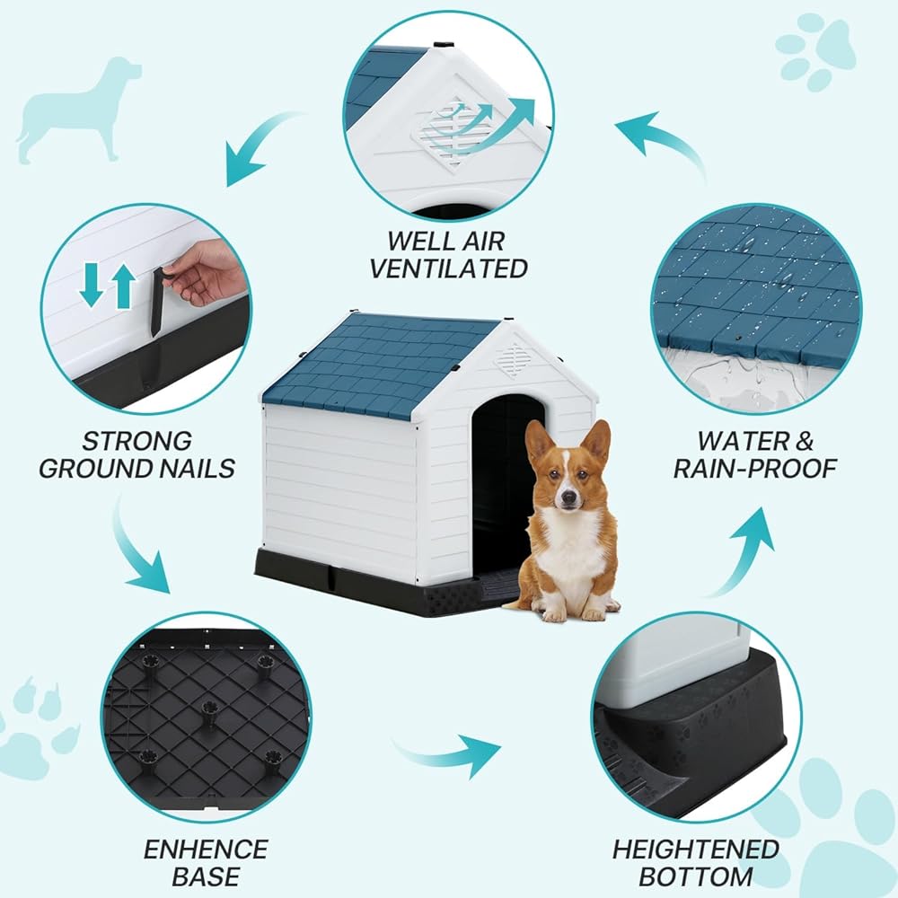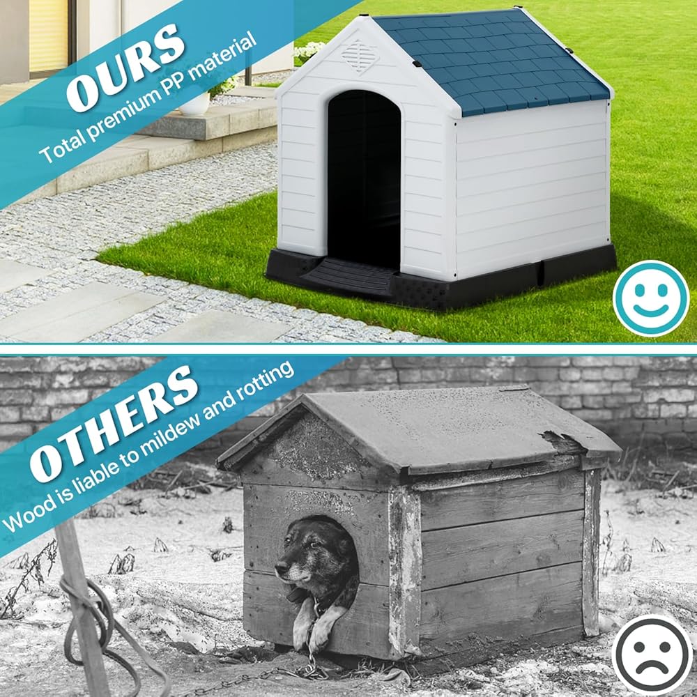 🐕🐕【Ruggedness】: Our dog houses are built with chunky PP material that is resistant to corrosion and weather and secured with clasp and screws to ensure structural stability; It is strong enough that even an adult can sit on the roof without collapsing.