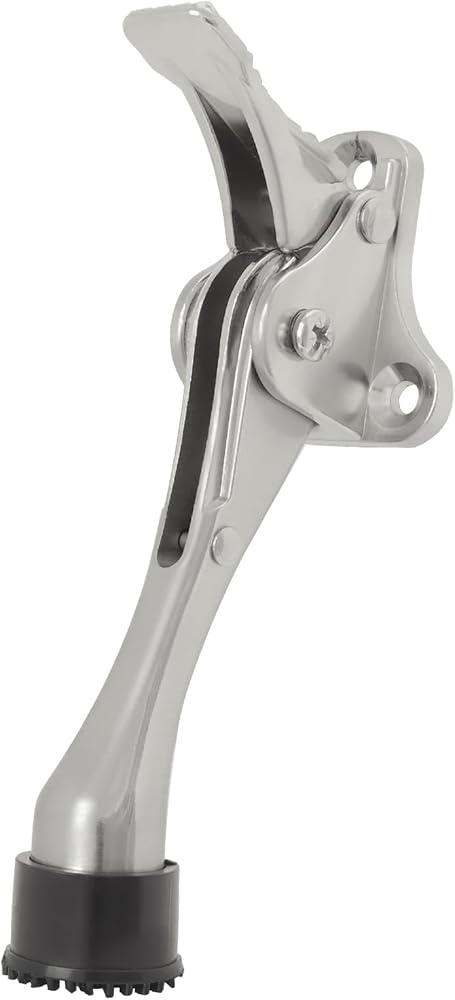 Kickdown Door Stoppers 4 Inches, Heavy Duty Door Stoppers for Bottom of Door, Door Stop with One Touch and Soft Rubber Tips, Zinc, Brushed Satin Nickel