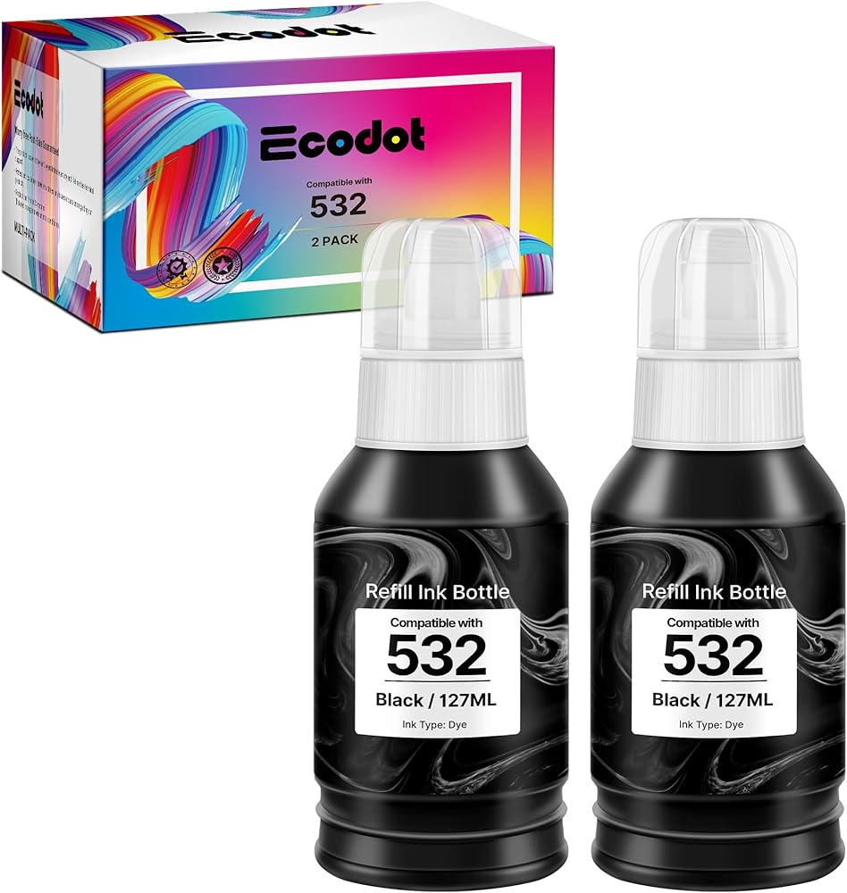 Easy to use: ecodot Compatible for Epson 532 black ink bottle with complete compatibility and high quality for Office and Home everyday printing. Not Sublimation Ink