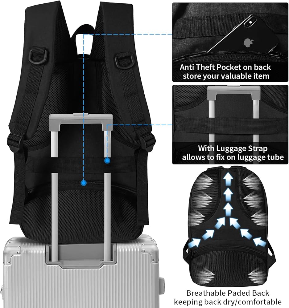 Ergonomically Design: Travel laptop backpack, equipped with thick lightweight padding, providing excellent support, protect your items better. Mens backpack with luggage strap make it fixed on the luggage pole, freeing your hands for easier carrying