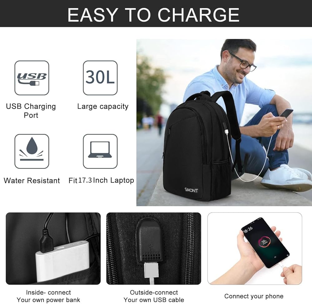 Water Resistant / With USB Charger Port: Polyester fabric with a PVC adhesive base makes computer backpack water resistant, protects your items from small rain. Work backpack with USB charge port, easy to charge your smart devices while walking