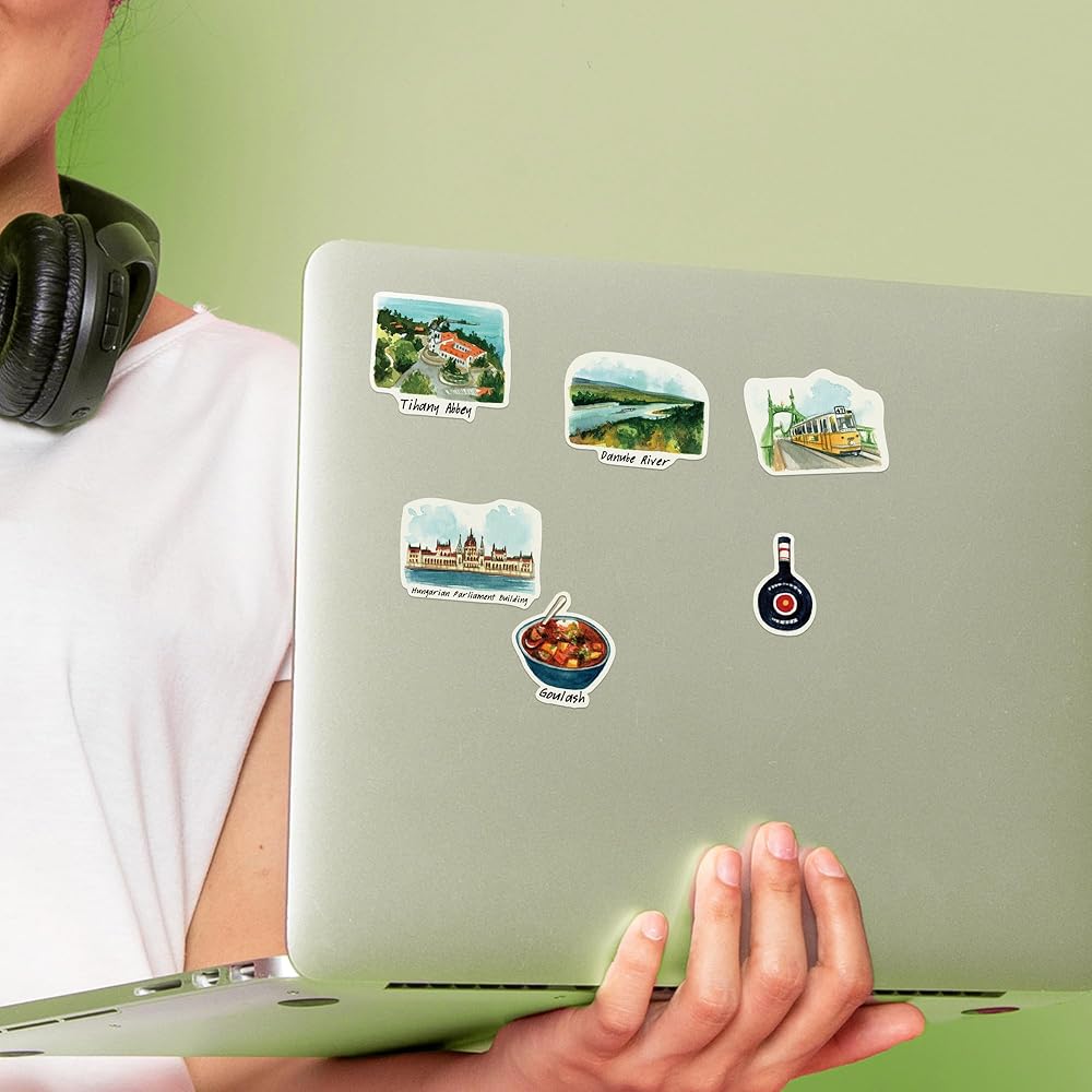 28 HUNGARY DIE-CUT TRAVEL STICKERS. Embark on a captivating journey through Hungary with our meticulously crafted sticker set, capturing the essence of this vibrant Central European country. Ranging from 1 to 2.5 inches, each sticker is a delightful keepsake of your Hungarian adventure, inviting you to cherish memories of its rich history and cultural tapestry. Perfect for embellishing travel journals, scrapbooks, and more, these stickers ensure your experiences in Hungary shine as brightly as the Danube at sunset.