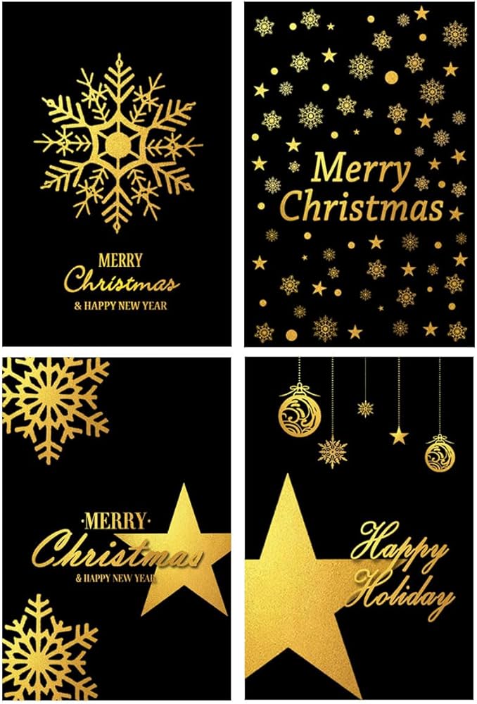 2.This set boasts four unique card designs, ranging from snowflakes to shimmering orbs and dazzling stars, all adorned with the heartfelt greetings of "Merry Christmas" and "Happy New Year." Suitable for friends, family, or business associates, they'll make a lasting impression.