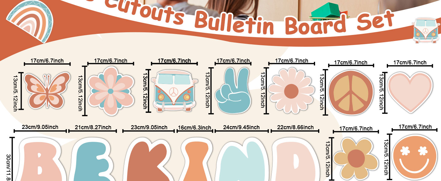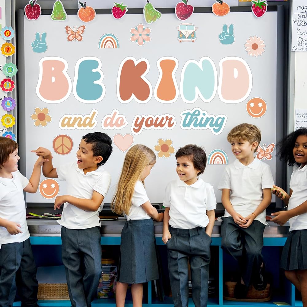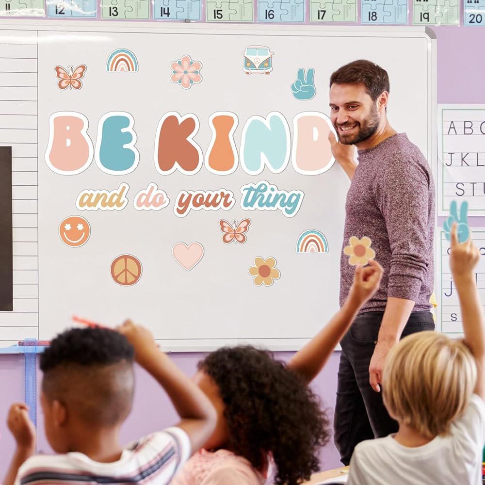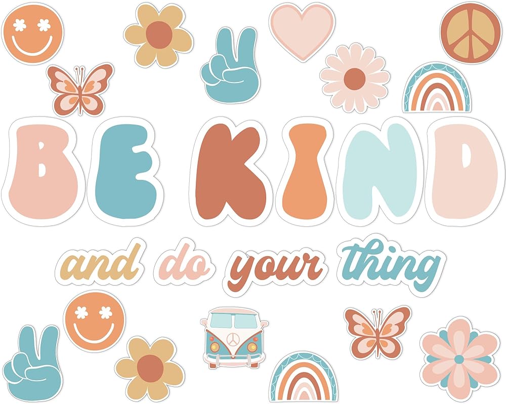 Hippie Be Kind And Do Your Thing Cutouts Classroom Bulletin Board Groovy Positive Sayings Accents Motivational Psychology Quote Cards Classroom Educational Decoration for School Home Office Wall Decor