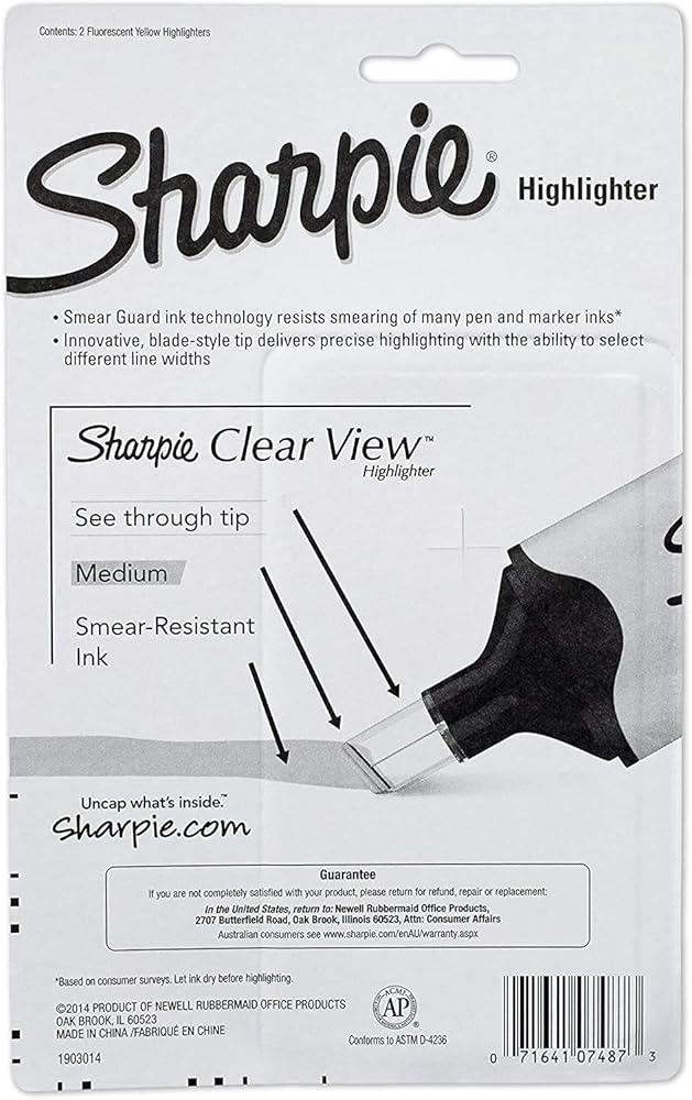 Know exactly when to stop highlighting with the help of a clear, see-through tip. The Sharpie Clear View Highlighter features a transparent tip that makes it easy to precisely highlight text. And bright fluorescent colors help you precisely emphasize just the right passages. Sharpie Clear View ink dries quickly, so pages stay neat and easy to read. Control meets accuracy with the Sharpie Clear View Highlighter.