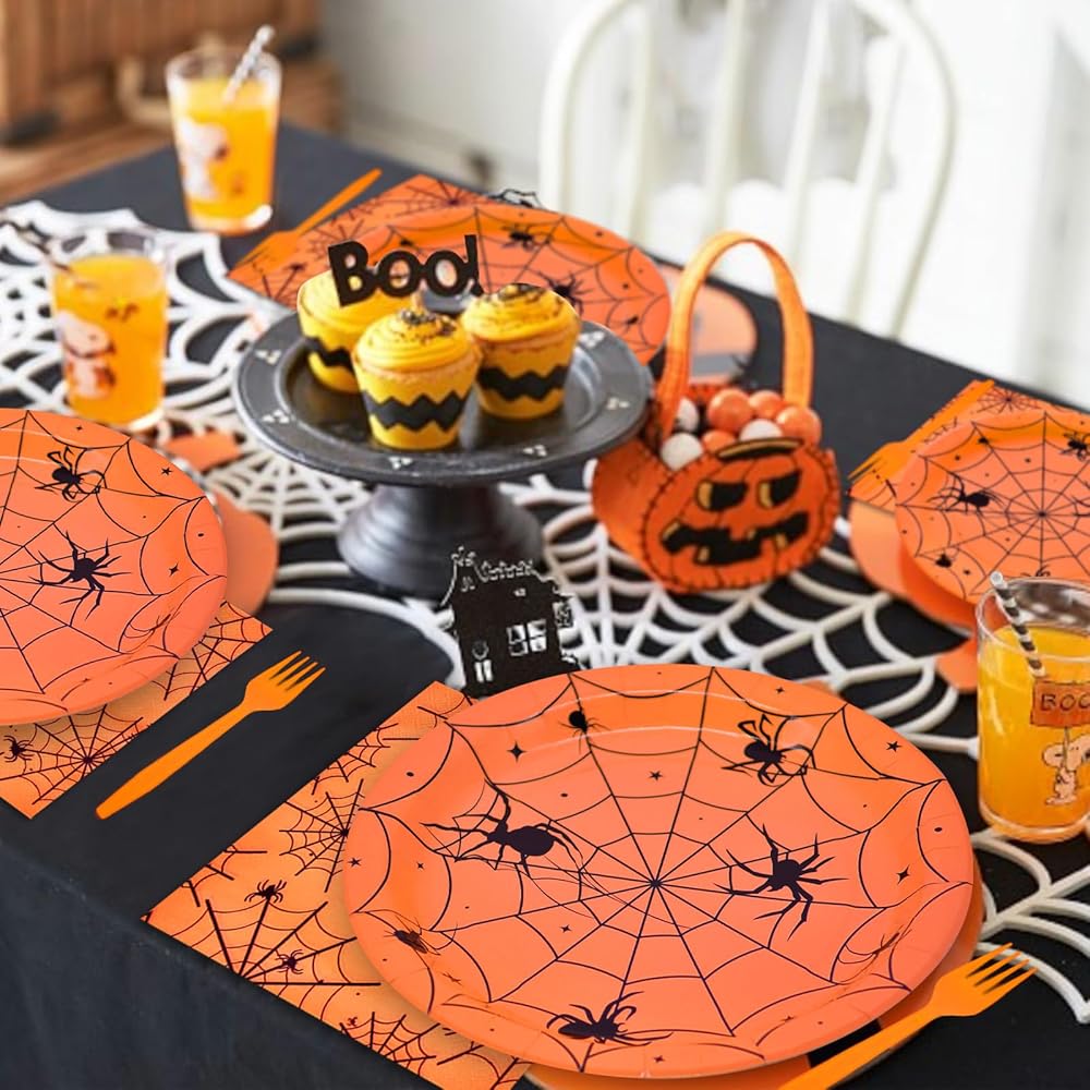 Spooky Halloween Design - Each item features a creepy spider web design, adding a touch of fright to your gathering. This design pairs well with a variety of Halloween themes and decorations, making it great for Halloween parties, spooky celebrations, and themed birthdays.