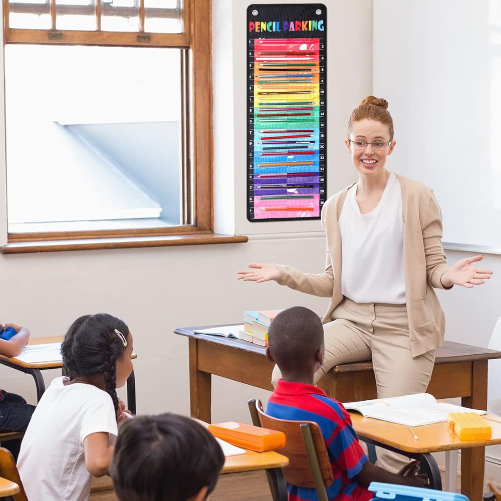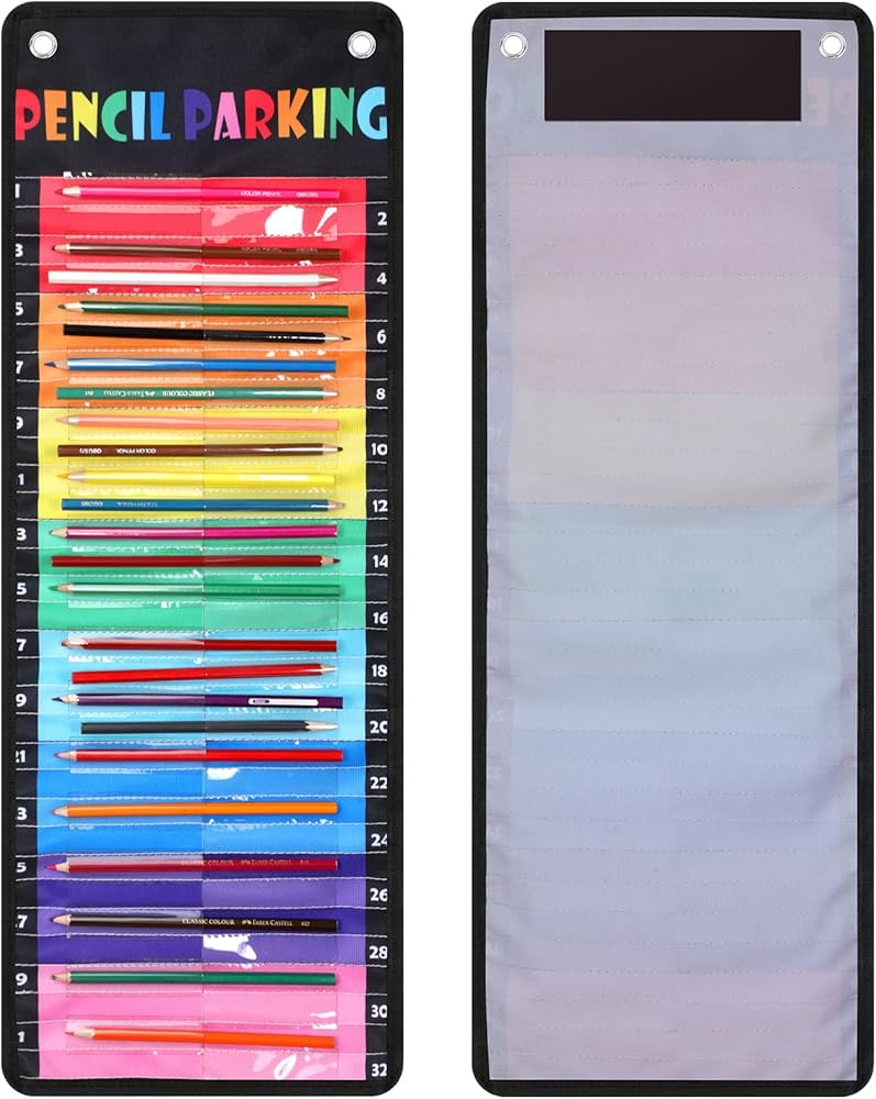 Keep your pencils: our pocket chart for classroom is designed for holding your pencils, with 32 small pockets for you to use, each number printed on the side corresponds to the same pencil number