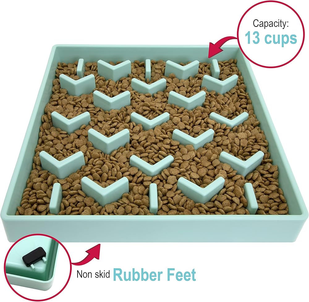 SIZED JUST RIGHT: This tray holds 13 cups 3.08 L, plenty to keep a pet well fed. The Sportpet Slow Feed Tray is 12.5in x 12.5in x 1.8in and suitable for medium to large dogs