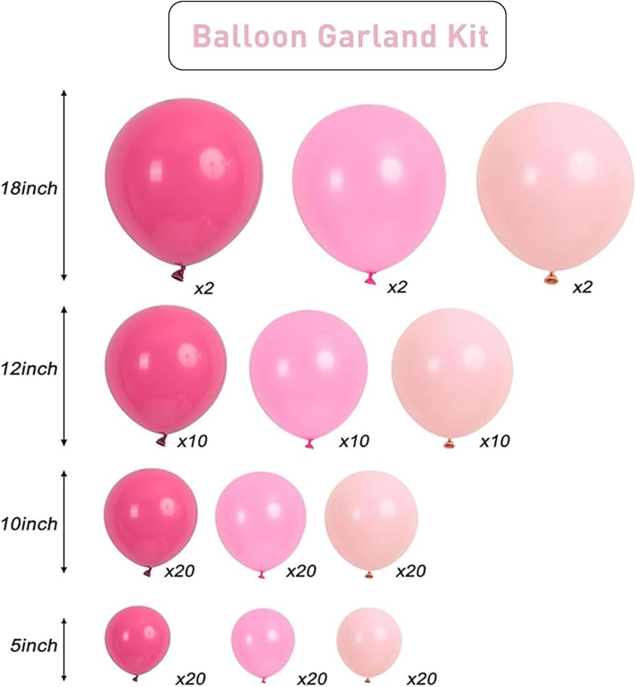 Product Including: 114pcs Balloons. 5pcs Aluminum Film Balloons and 109pcs Latex Balloons