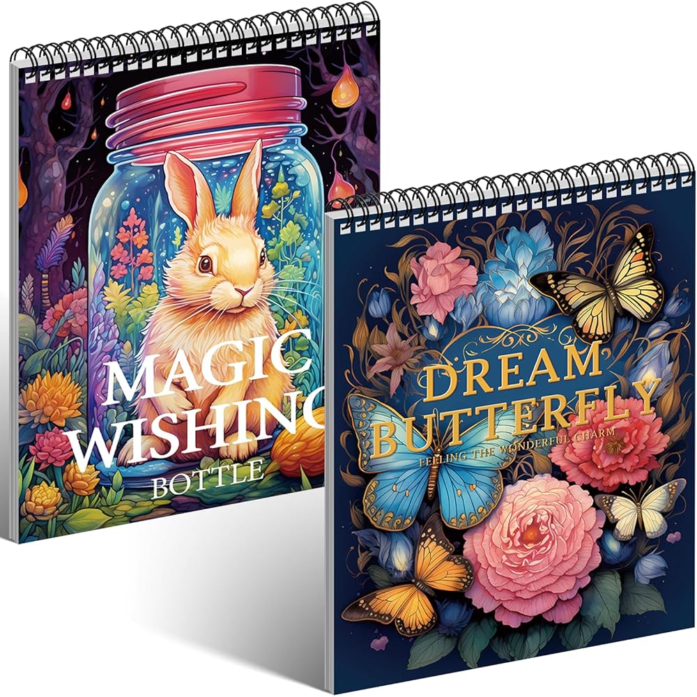 2Pcs Coloring Books for Adults Relaxation Coloring Book for Women Spiral Bound Printed On One Side Fun Magic Coloring Book(Magic Wishing & Dream Butterfly)