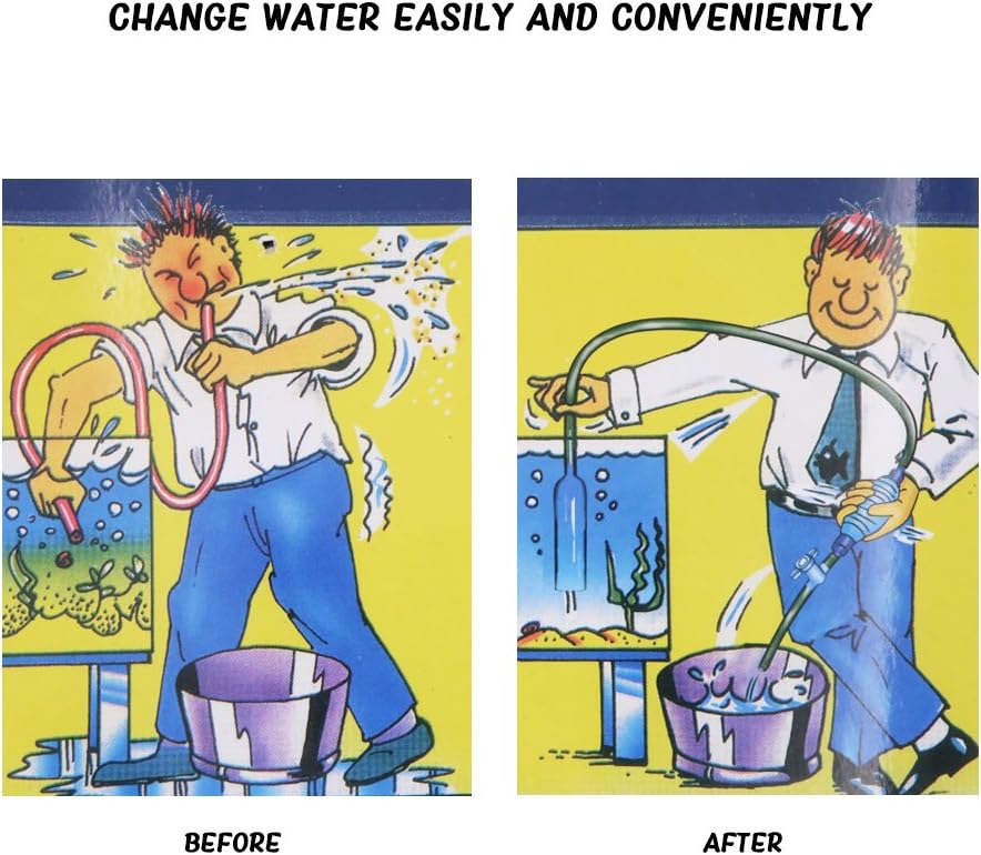 NO MESS SHUT OFF VALVE- Our fish tank vacuum cleaner has a shut off valve that will ensure water does not spill on the ground when you're done cleaning. The aquarium siphon pump can used around carpet with no worries of spilling water.