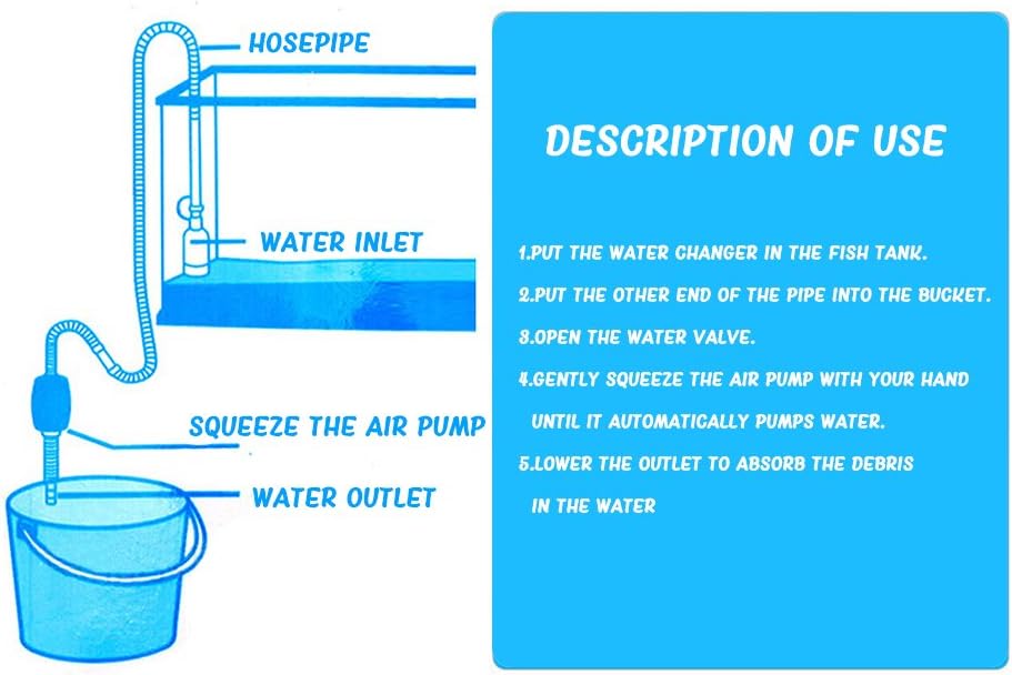 EASY TO USE- Simply insert the filter of the Aquarium Cleaner Vacuum into fish tank and gently squeeze the pump. Spot clean by inserting the filter into the gravel and squeezing the pump to create a siphon then slightly lifting up so you don't remove fish tank gravel.