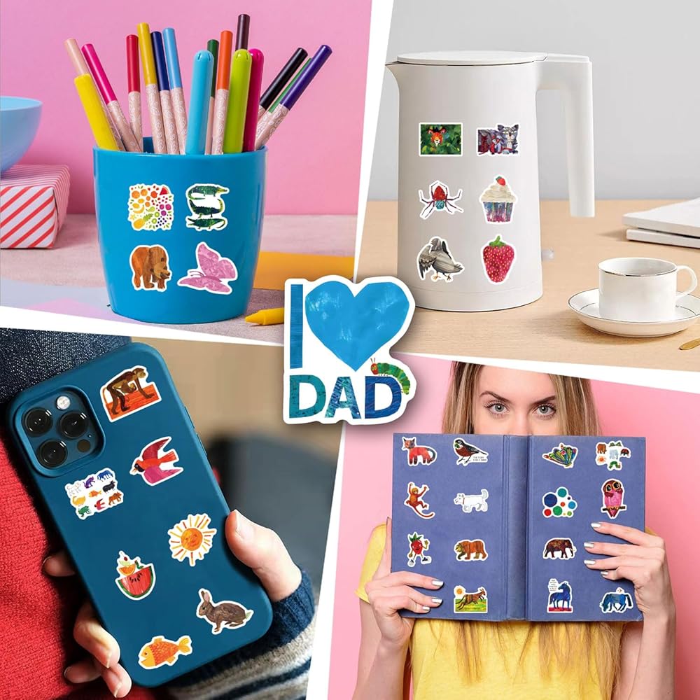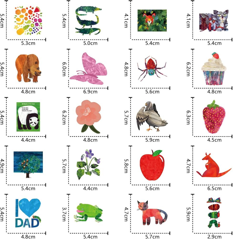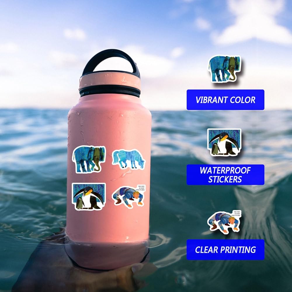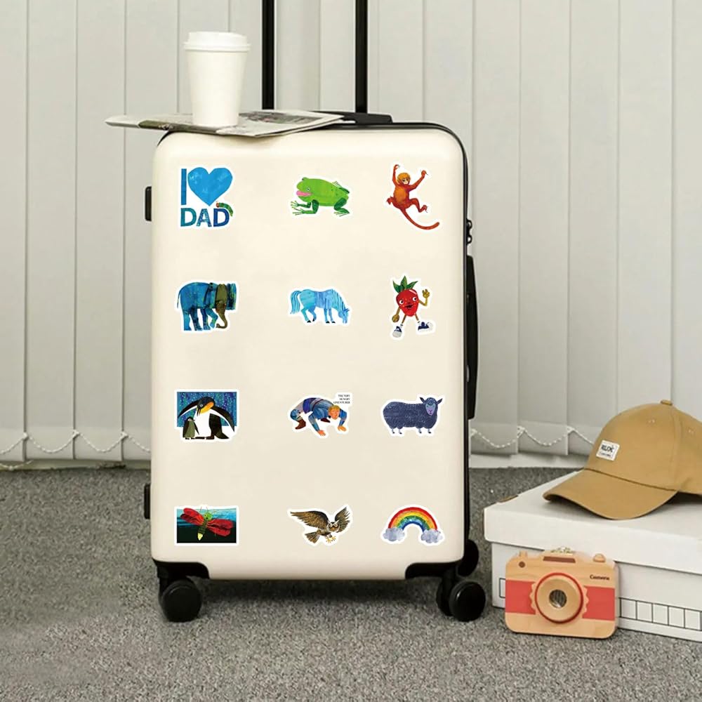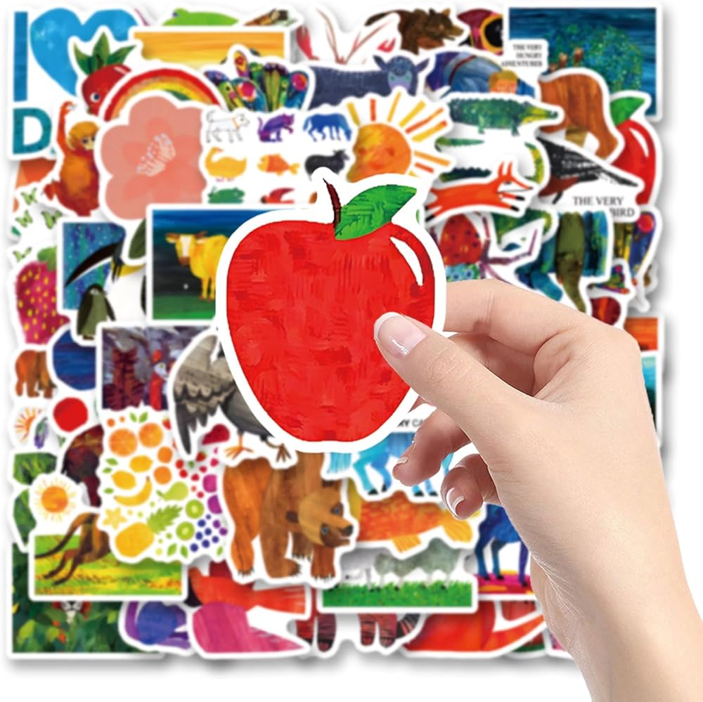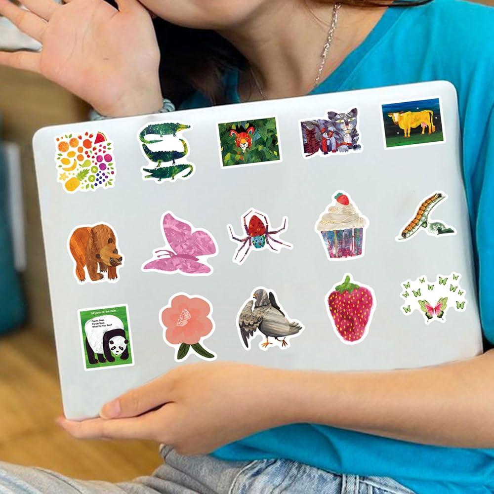64Pcs Eric Carle Stickers Pack,Cute Cartoon Aesthetics Vinyl Waterproof Decals for Water Bottle, Laptop, Phone, Skateboard, Journaling for Kids Teens Adults for Party Supply Decor Favor