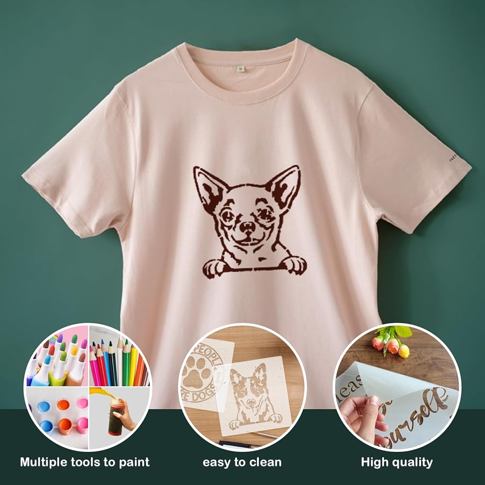 • 🐕︎Multipurpose Stencils: Perfect for acrylic painting, chalk drawing, airbrushing, and brush painting on various surfaces like doghouses, wooden tables, cabinets, pillows, blank canvases, gift bags, and cards.