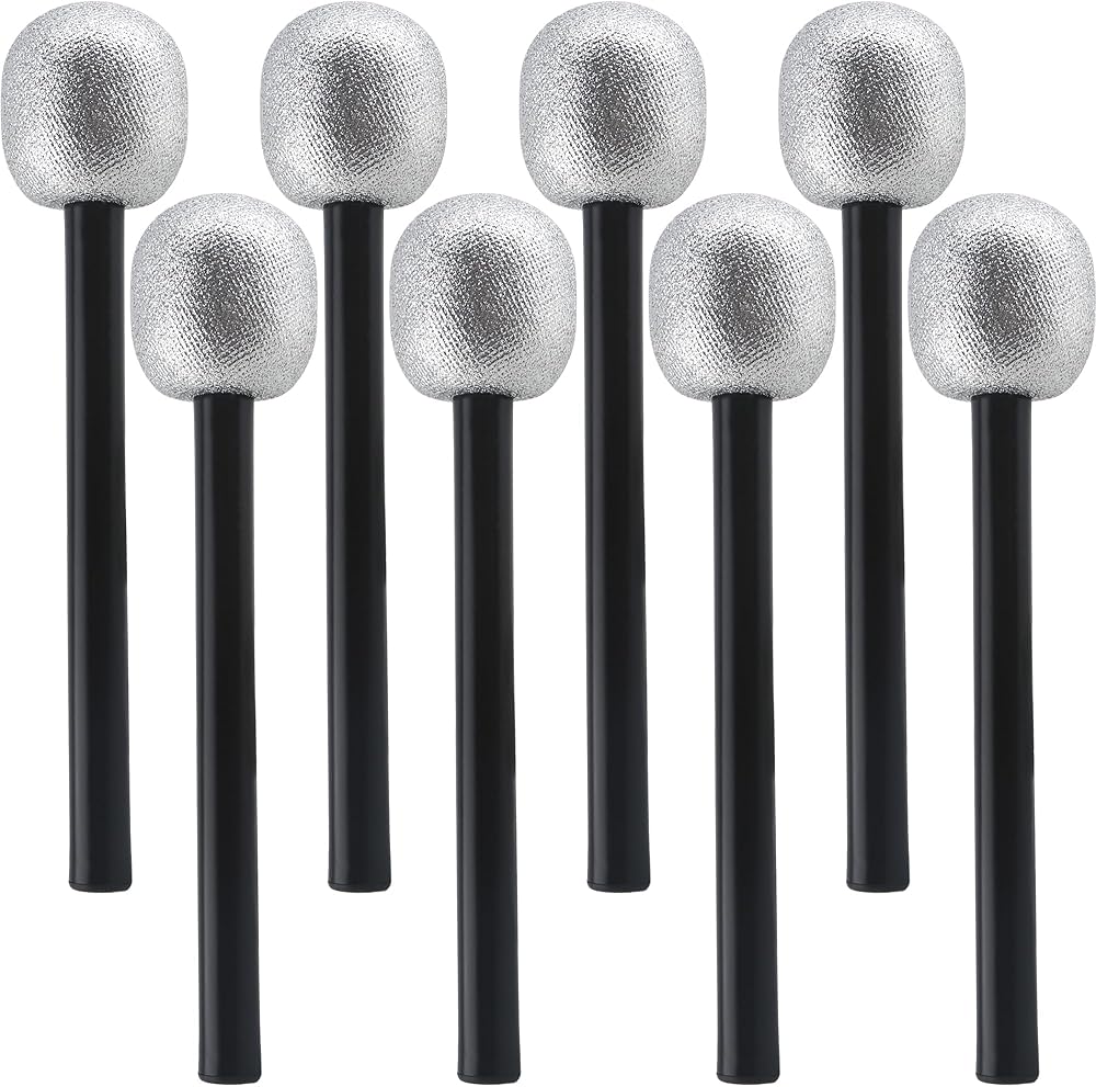 Haconba 8 Pack Microphone Toy Fake Plastic Glitter Stage Mic Costume Prop for Stage Play Cosplay Prop Birthday Disco Theme Party Favors