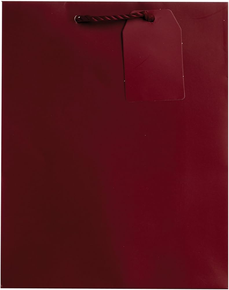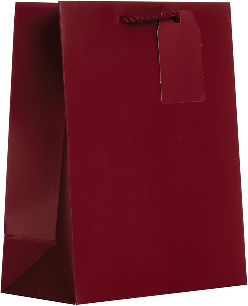 6 versatile burgundy gift bags with a sophisticated matte finish; bags measure 8 x 10 x 4 Inches