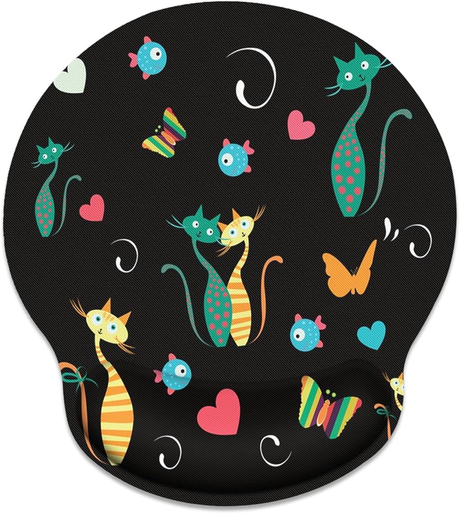 Britimes Ergonomic Mouse Pad with Wrist Support Black Butterflies and Cats Non-Slip Rubber Base Mousepad for Home Office Gaming Working Computers Laptop Easy Typing & Pain Relief