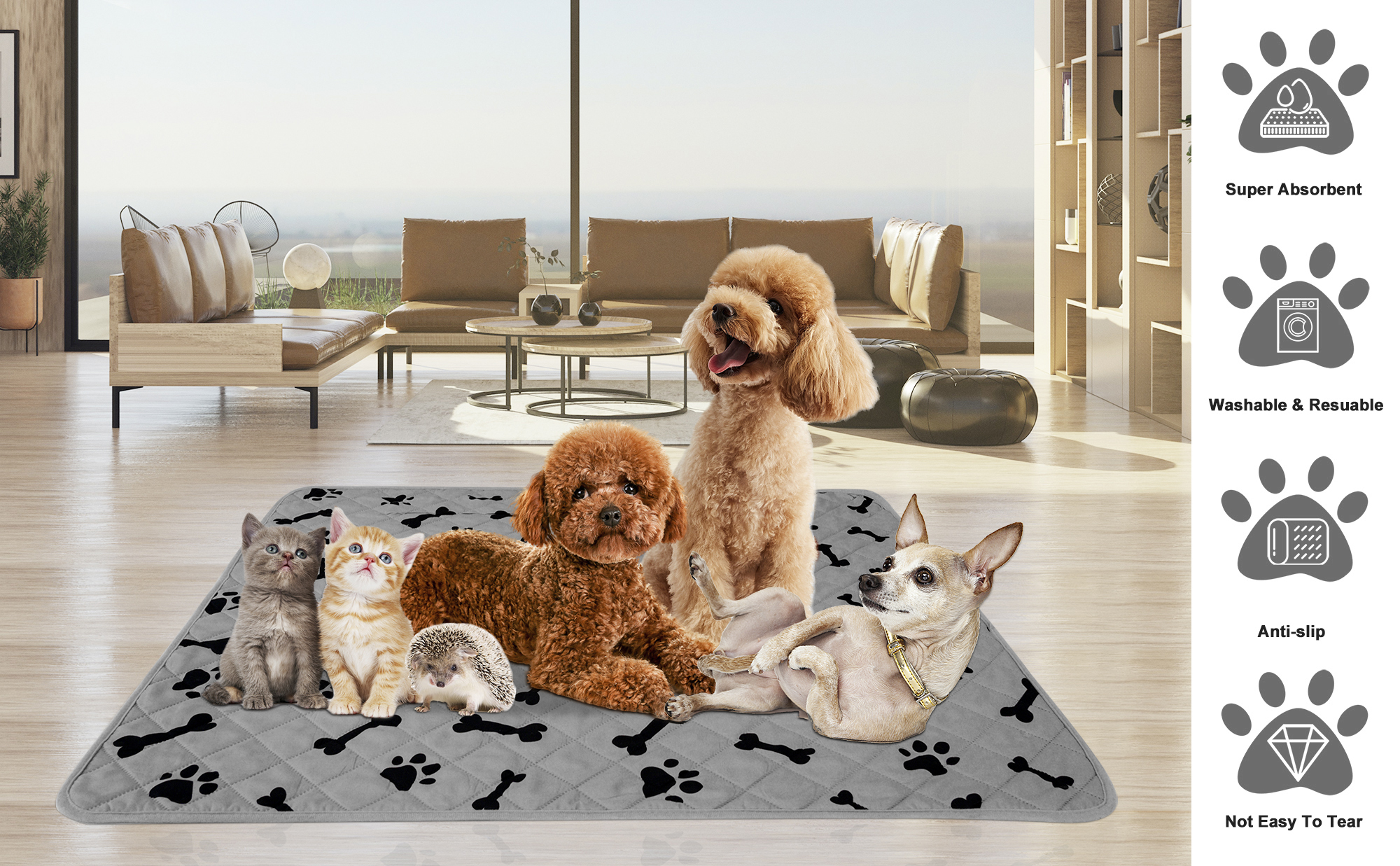 Soft & Comfortable - Soft material provides a comfortable environment for puppies, and the upper absorbent material quickly absorbs pet urine. Keep puppies dry all the night.