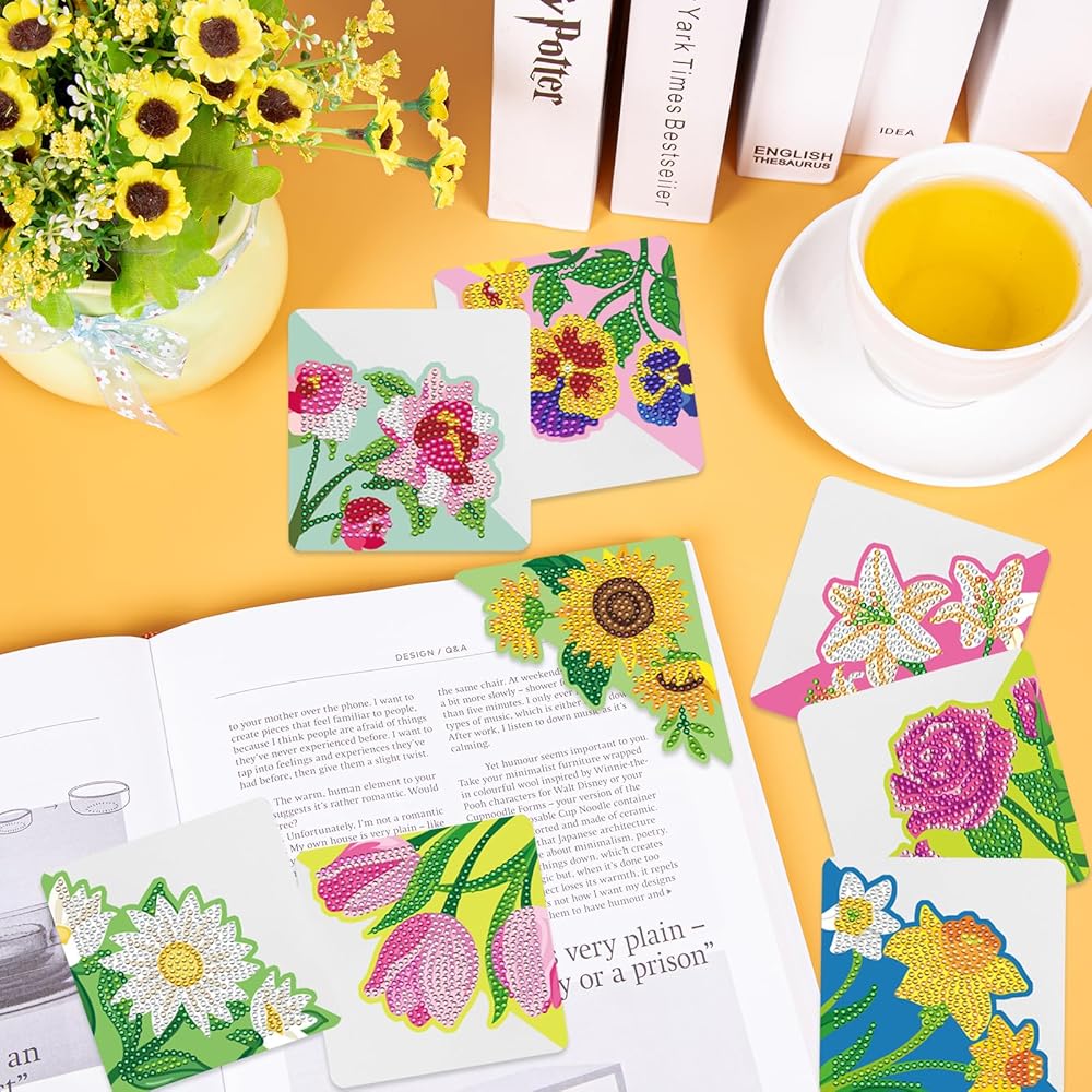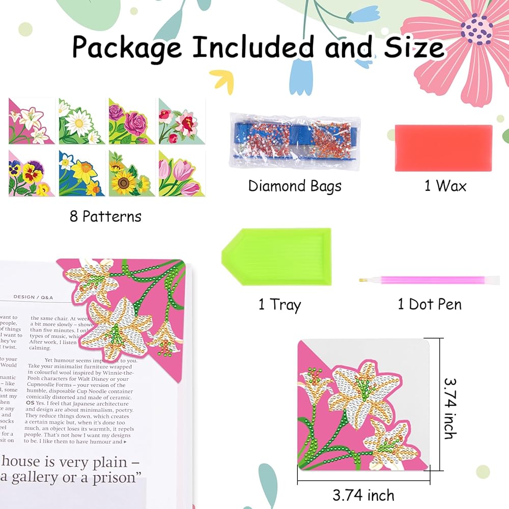 DIAMOND ART BOOKMARK SET: You will receive 8 different styles and patterns of diamond art bookmarks and 1 DIY kit, which includes 1*pen, 1*diamond tray, 1*clay adhesive and 1 pack of colorful diamonds, you can DIY your own bookmarks for fun and education.
