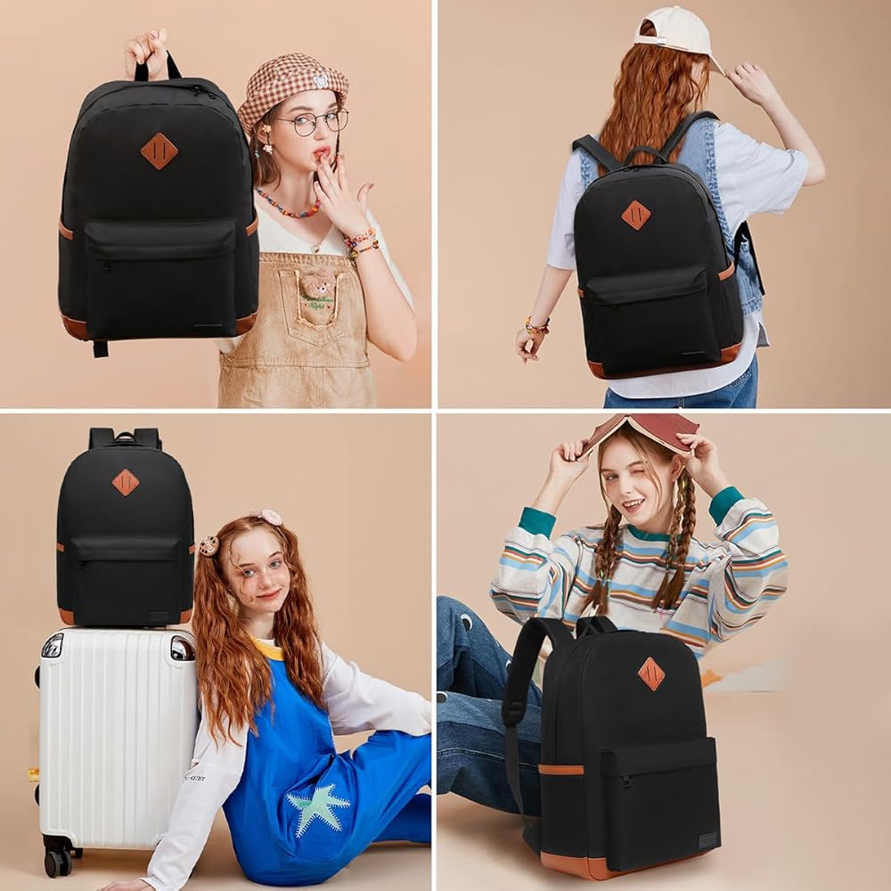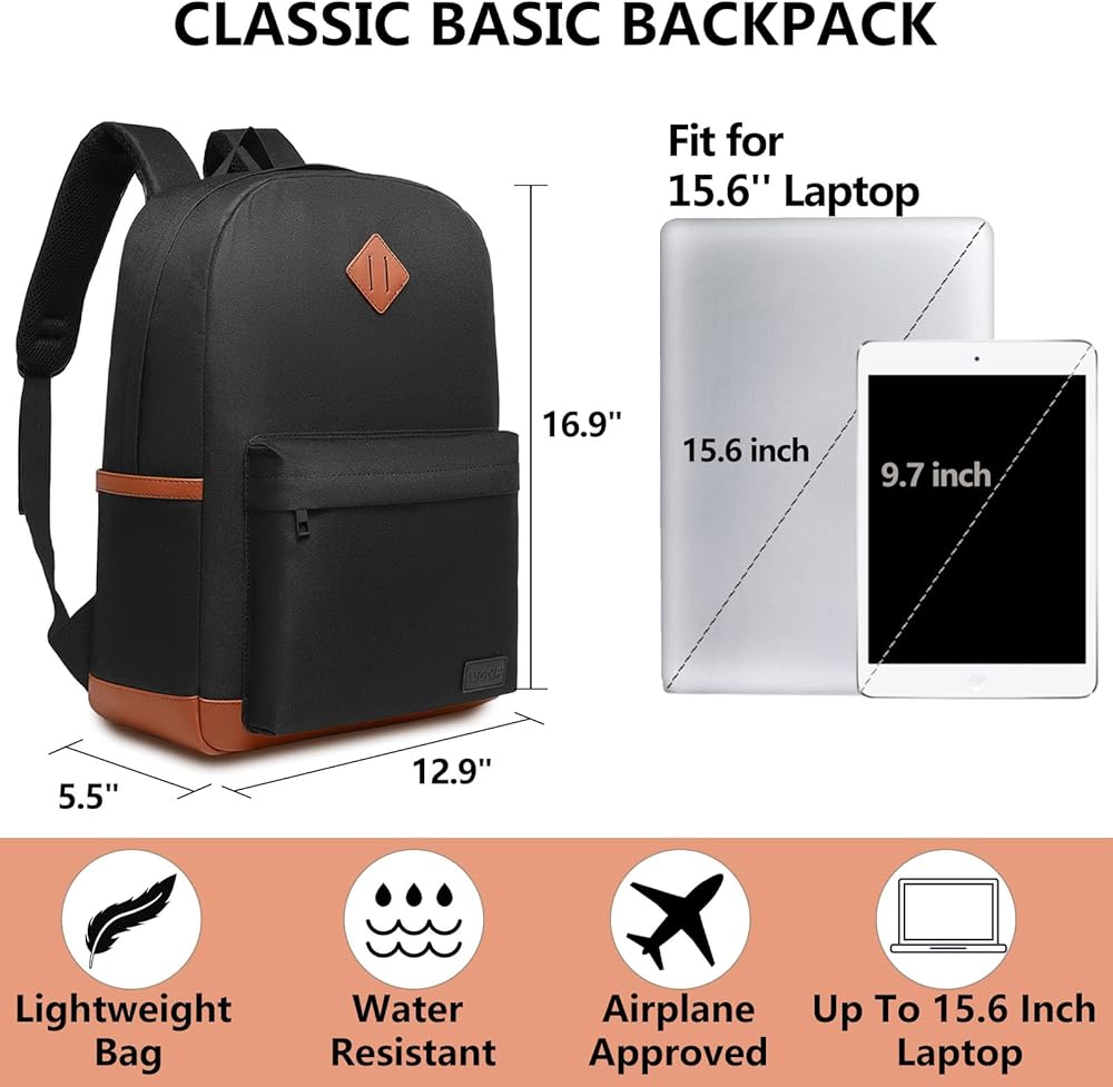 School Backpack Classic Casual Bookbag - 15.6 inch Laptop Backpack for Men Women Lightweight Work Bags Waterproof Daypack with Laptop Compartment College Student SchoolBag for Boys Girls Teens Black