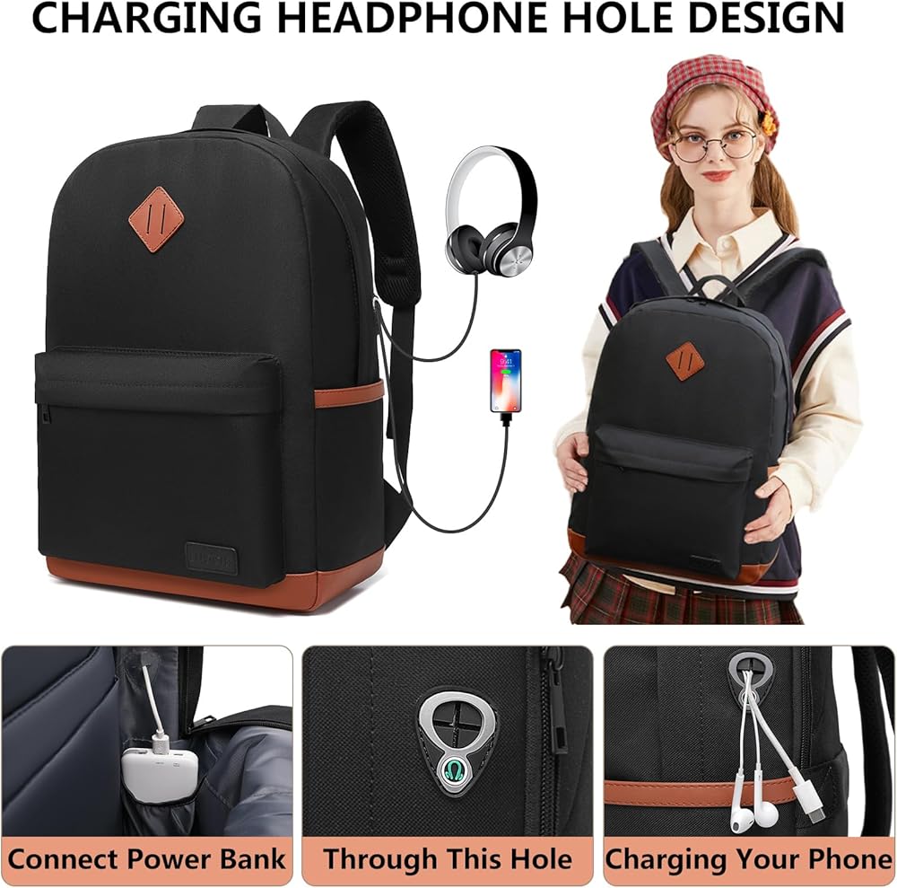 CHARGING & HEADPHONE HOLE DESIGN - On the side of this casual men women backpacks, we designed a cable hole. You can connect your power bank (NOT INCLUDED) and through this hole, easily charge your phone while you're on the go. In the meantime, You can also put the headphone cable through this hole to your phone. Enjoying the music everywhere