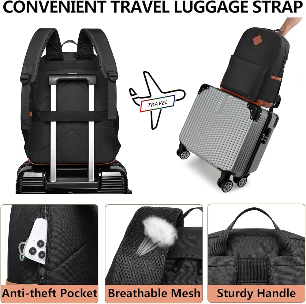 CONVENIENT LUGGAGE STRAP - This computer bookbag has luggage straps on the back perfect for your traveling to slide onto your suitcase handle. Perfect to throw the travel backpack under your seat on an airplane when you are on business trip. An anti-theft pocket located on the back keeps your wallet, phone and other valuable items safe