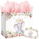 Package Includes: 1 large baby shower gift bag, 3 tissue paper, 1 greeting card, great for all kinds of birthday needs.