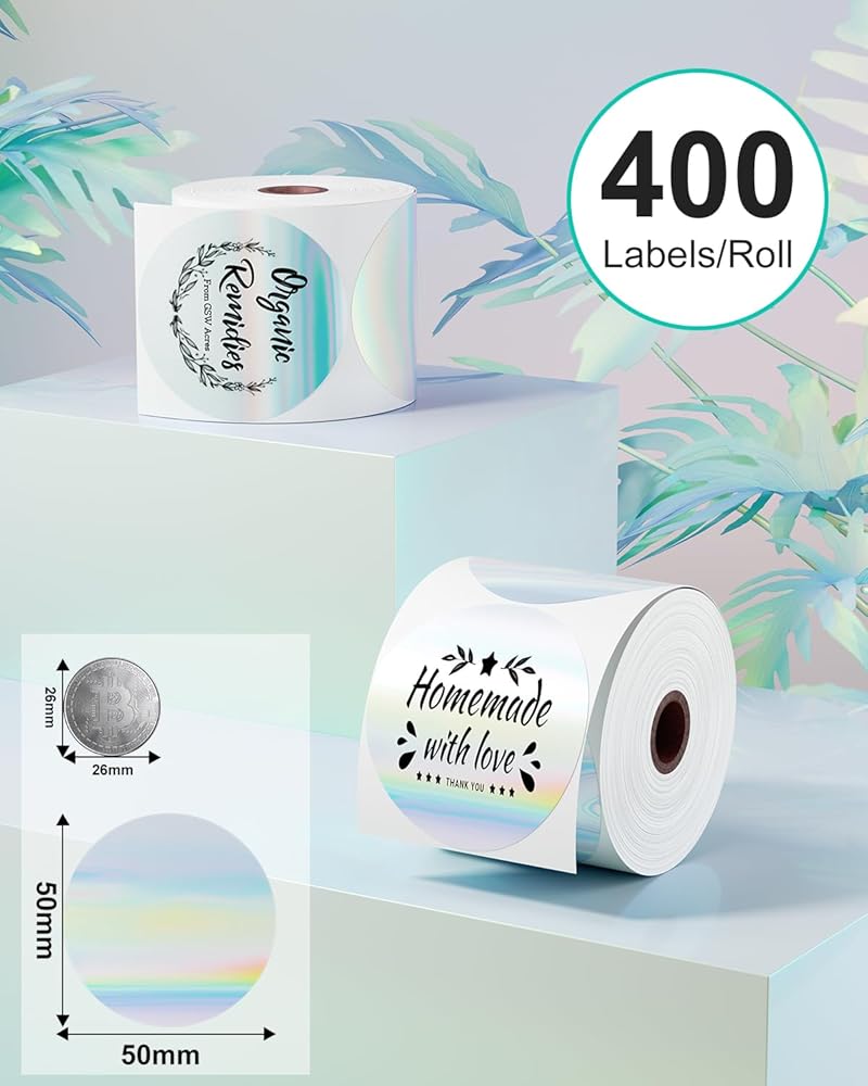 Memoqueen Color 2 Inch Round Thermal Labels, Circle Direct Thermal Printer Labels for Small Business, Multi-Purpose Sticker Labels for Logo, DIY, Retail, QR Code, Thank You Labels, 400Labels/Roll