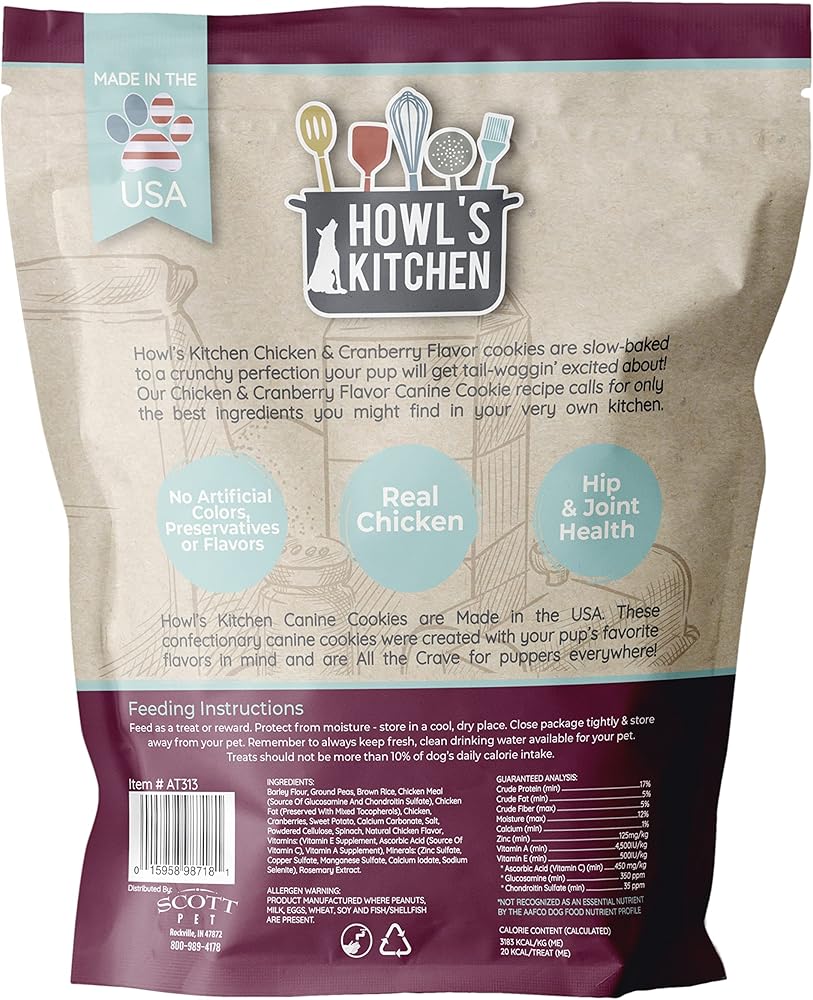 Howl's Kitchen Dog Cookies, 12 oz Bag, 1 Count, Chicken and Cranberry Flavor, Antioxidant Formula, Rawhide Free, Crunchy Dog Treats, For All Breed Sizes