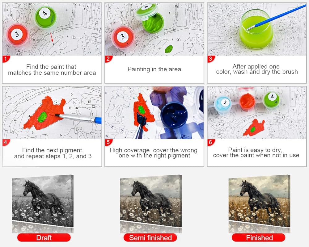 【High Quality】The paint-by-number canvas is moisture-proof and waterproof the acrylic paints are safe, non-toxic, and tasteless. HD printing technology makes the numbers on the canvas clear and easy to read.