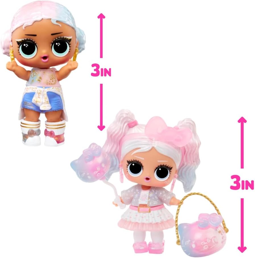 Introducing limited edition Hello Kitty Tots! Collaboration with the iconic Hello Kitty to celebrate her 50th anniversary and bring you the limited-edition doll Miss Pearly, with adorable Hello Kitty-themed fashions and accessories, all in a brand-new Hello Kitty shaped surprise ball! Unbox 7 shimmery, detailed surprises that match Hello Kitty's 50th anniversary celebration. Our Increditoyz 2-Pack gift set has both Hello Kitty 50th Anniversary Theme dolls: Miss Pearly and Crystal Cutie along with our free bundled gift.