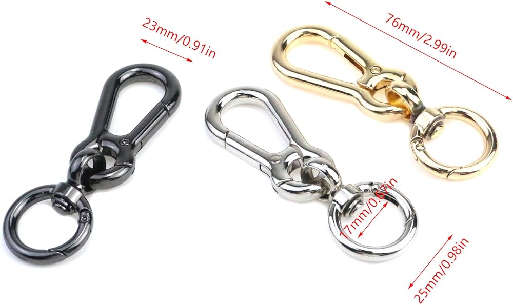 Application: These spring snap clip work great for replacing defective rings on your purse, repair purse strap, handbag, Bags, fastening items to belt loops and backpacks. It could also be used as a key chain.