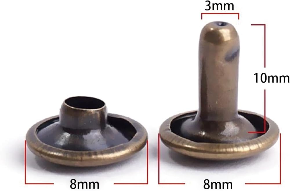 MATERIAL: The double cap rivets are made of iron material, which provides excellent sturdiness and durability. Whether installed by machine or manually, the iron material ensures a solid connection of the rivets, ensuring a long-lasting effect on repairs and decorations.