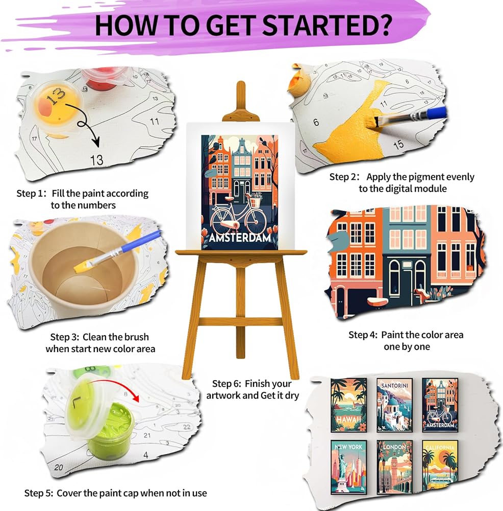 EASY PAINT by NUMBERS KIT for ADULTS: Paint-by-numbers kits are easy for anyone without knowledge of drawing to fulfill a classic artwork. Just enjoy the fun of DIY and making stylish oil painting by numbers.