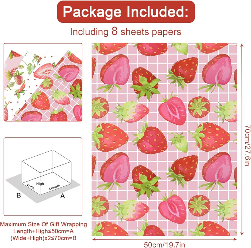 𝓖𝓻𝓮𝓪𝓽 𝓥𝓪𝓵𝓾𝓮 𝓟𝓪𝓬𝓴 🍓🍓You will get 8 sheets 4 designs Strawberry Wrapping Paper.Enough to meet your various wrapping gift needs and art craft making.